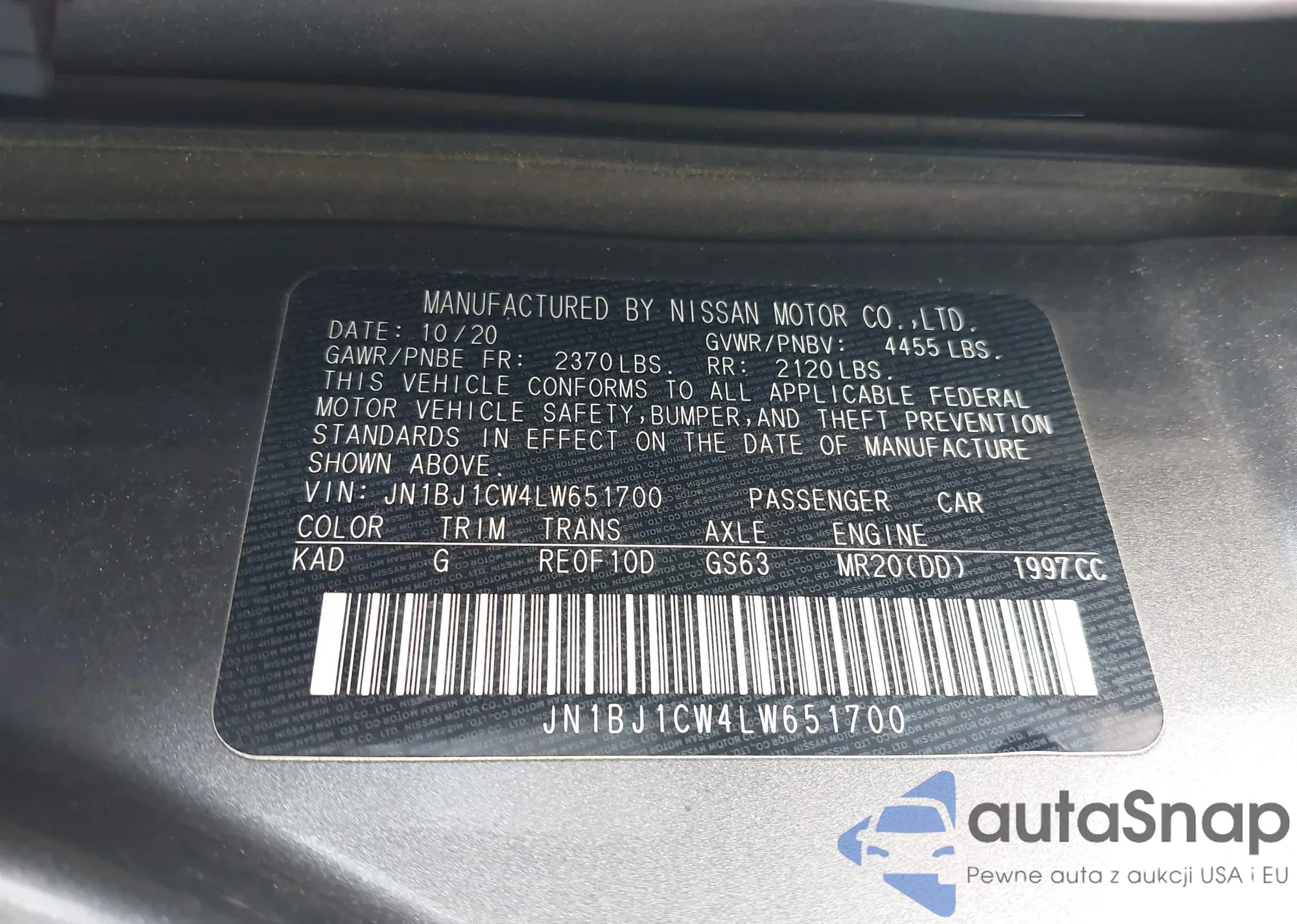 LOT: 42890854 VIN: JN1BJ1CW4LW651700