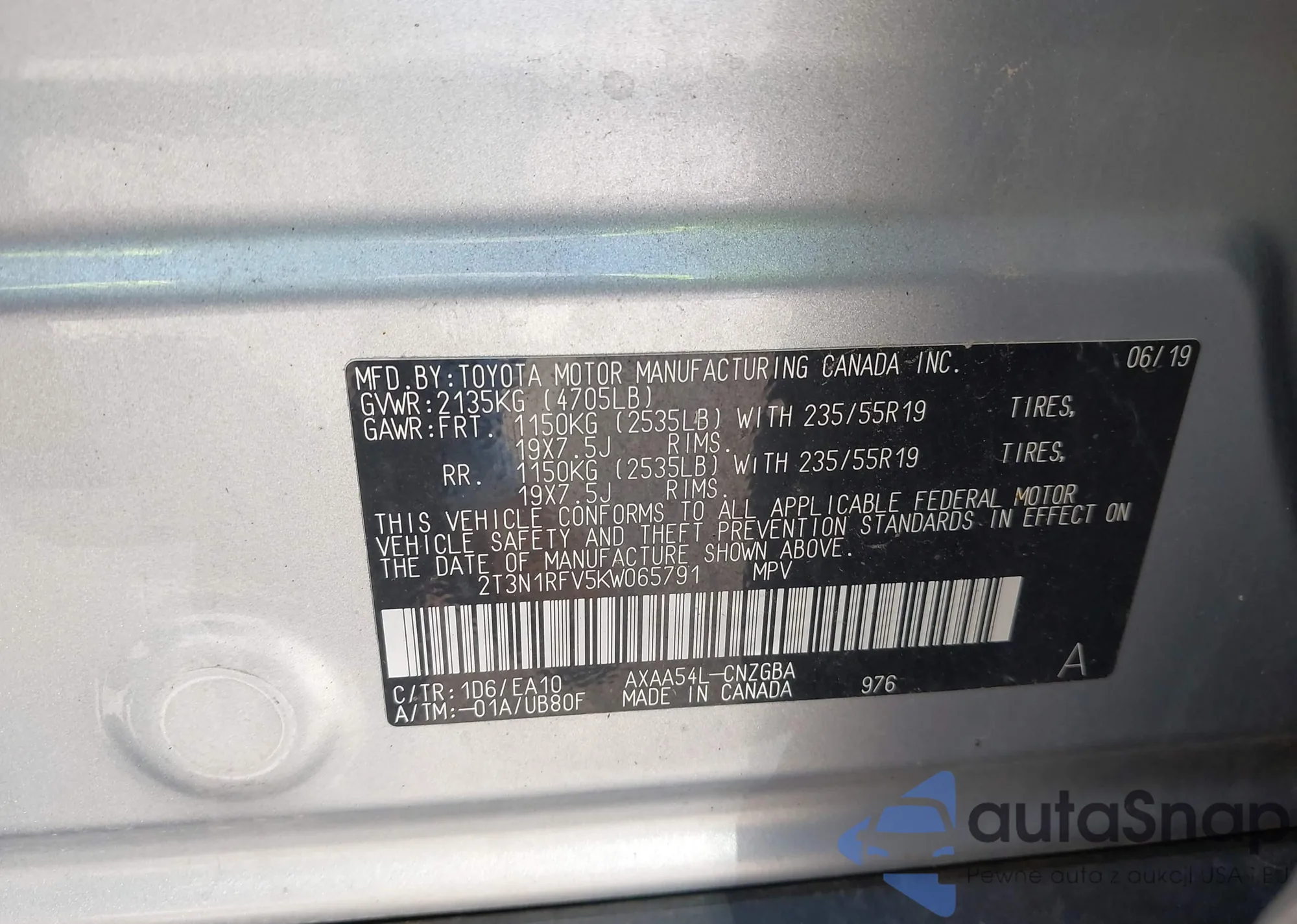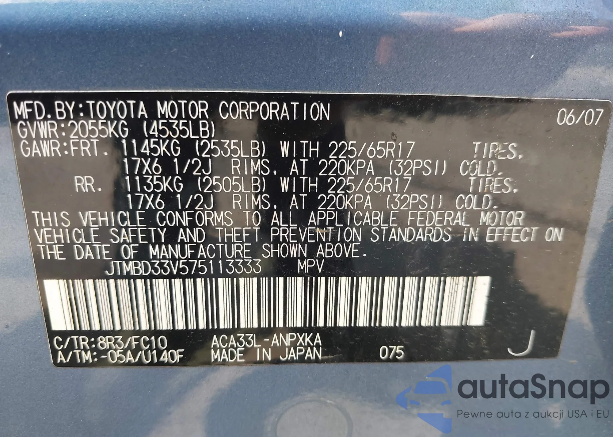 LOT: 42934117 VIN: JTMBD33V575113333