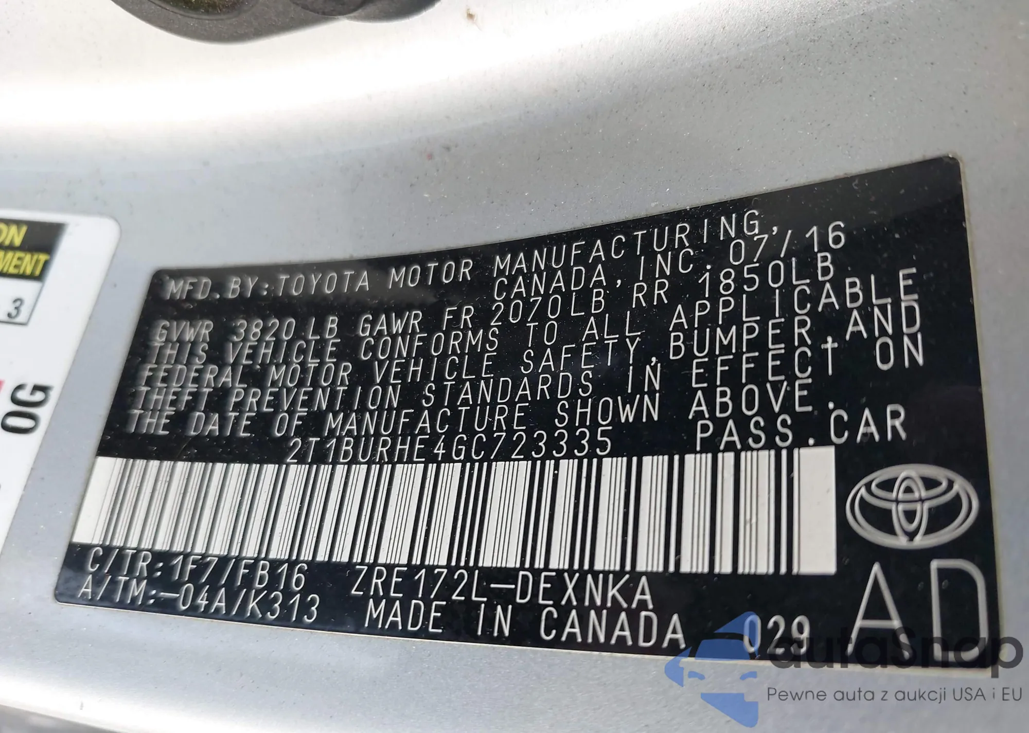 • VIN 2T1BURHE4GC723335