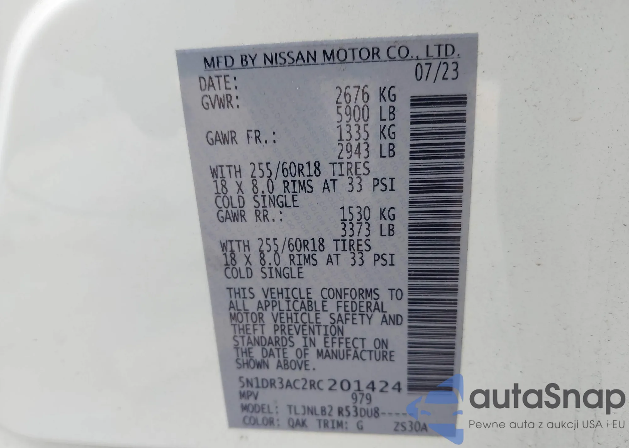 • VIN 5N1DR3AC2RC201424