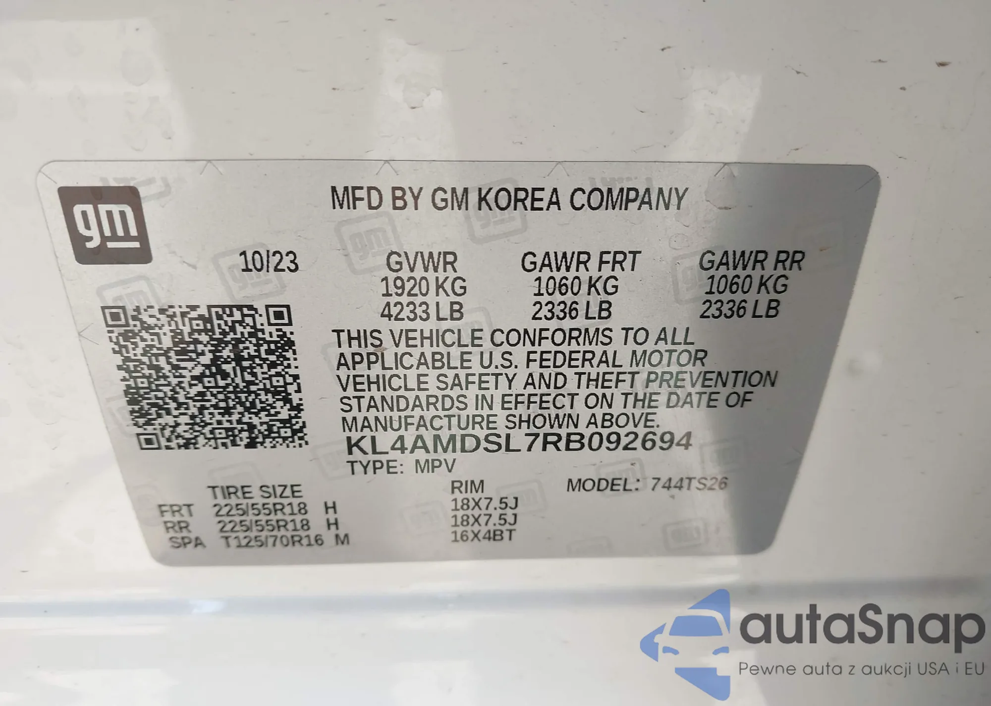 • VIN KL4AMDSL7RB092694