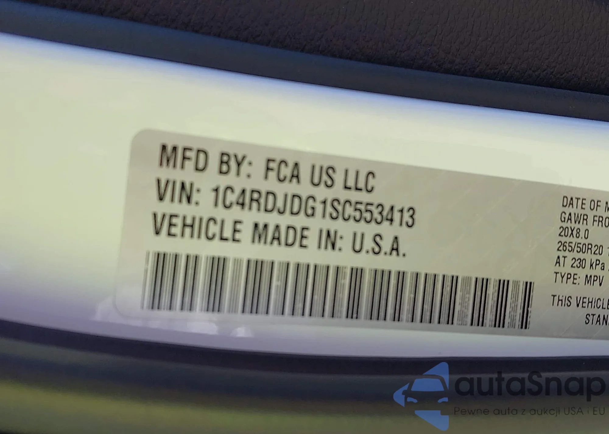 • VIN 1C4RDJDG1SC553413