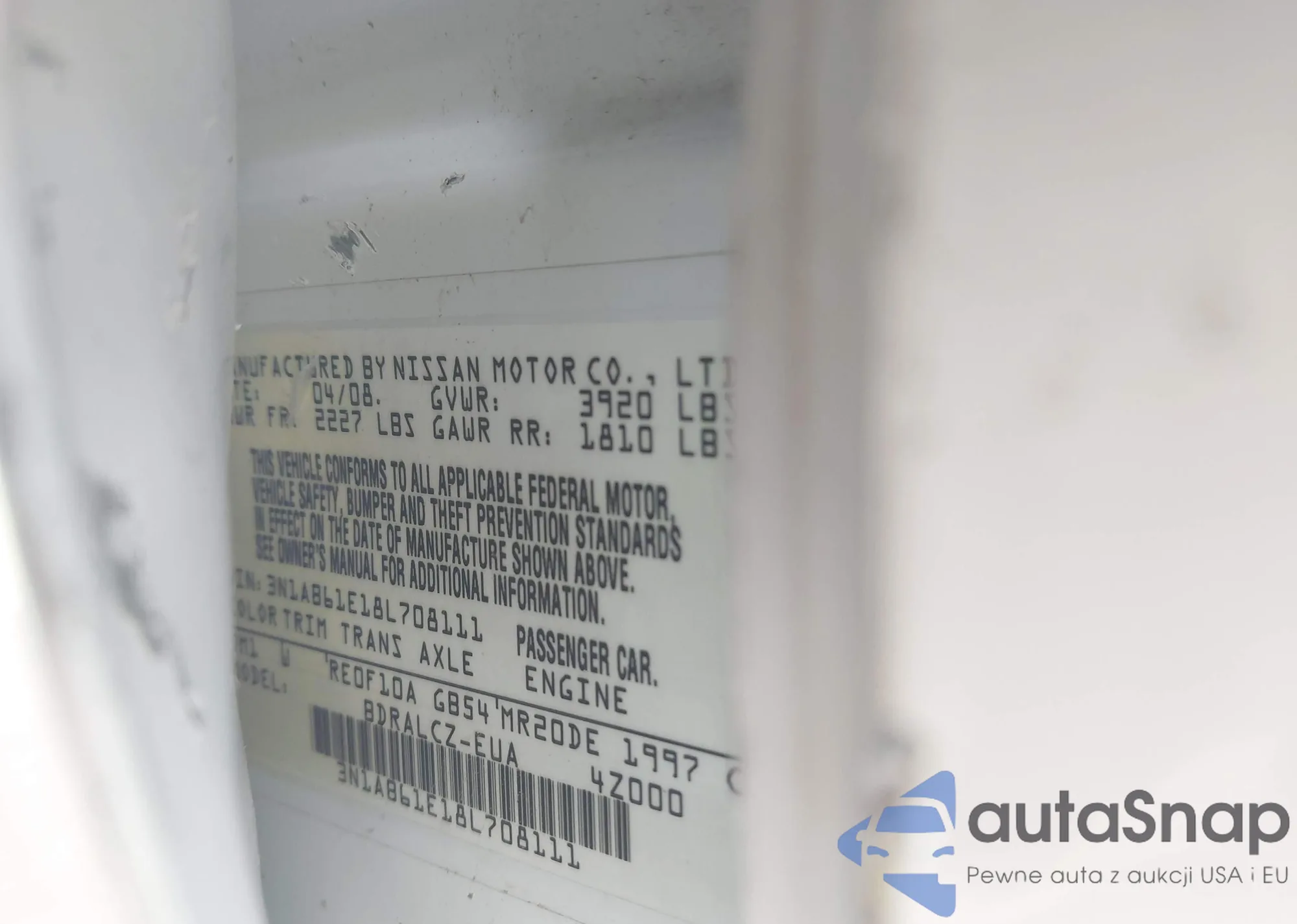 LOT: 42591456 VIN: 3N1AB61E18L708111