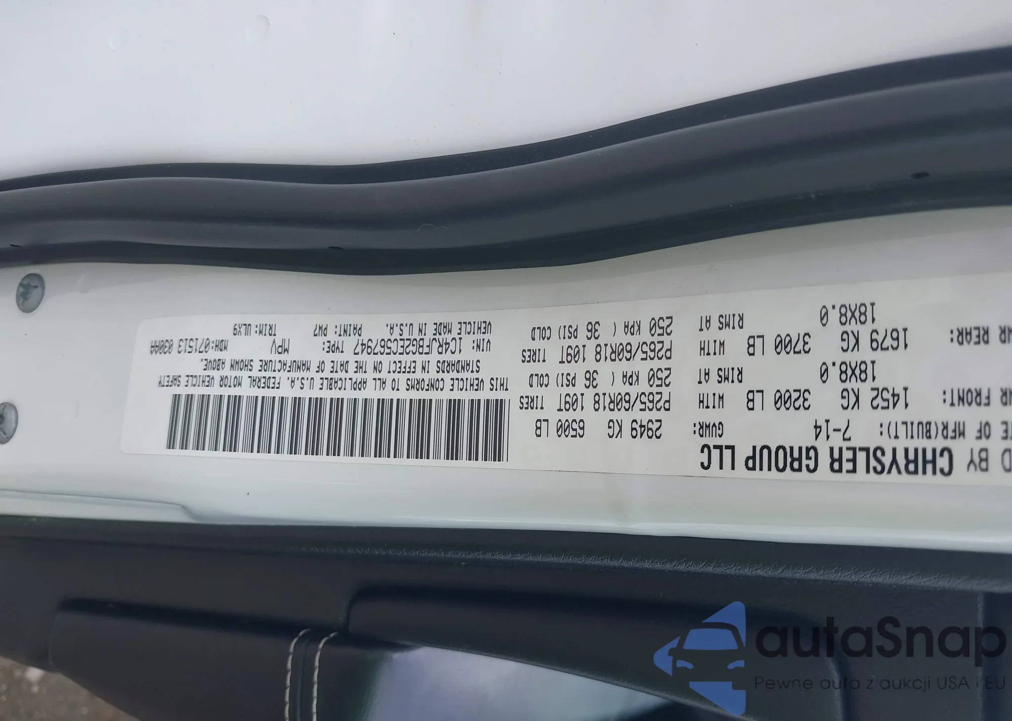 • VIN 1C4RJFBG2EC567947