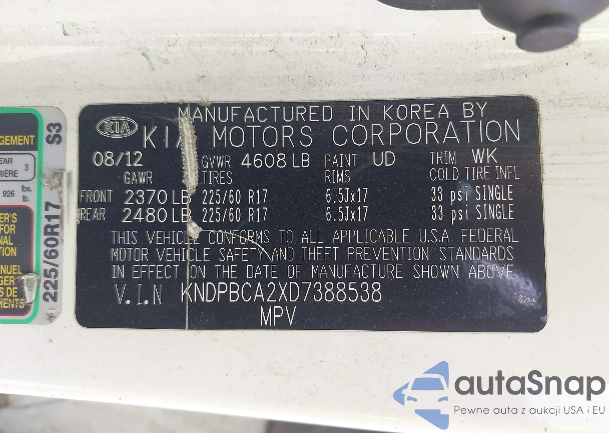 • VIN KNDPBCA2XD7388538
