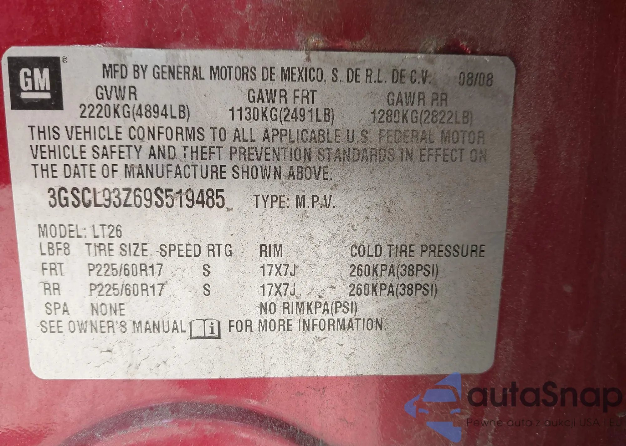 LOT: 42787331 VIN: 3GSCL93Z69S519485
