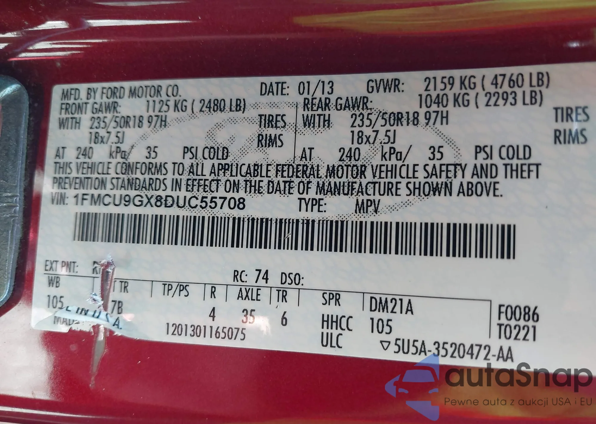 LOT: 42867172 VIN: 1FMCU9GX8DUC55708