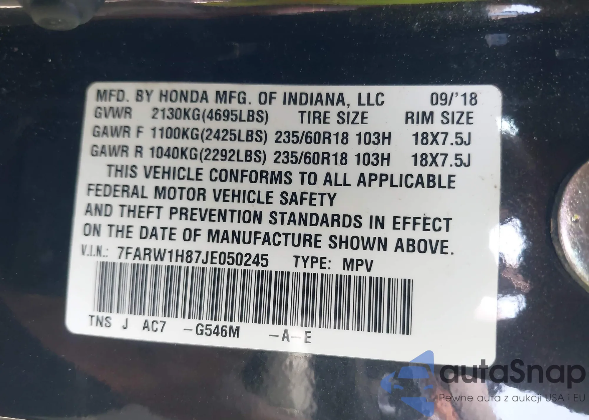 • VIN 7FARW1H87JE050245
