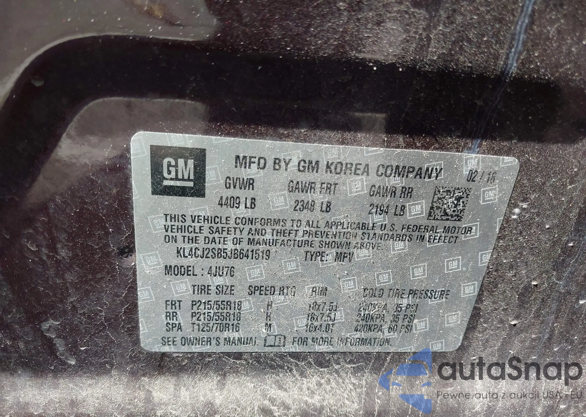 • VIN KL4CJ2SB5JB641519
