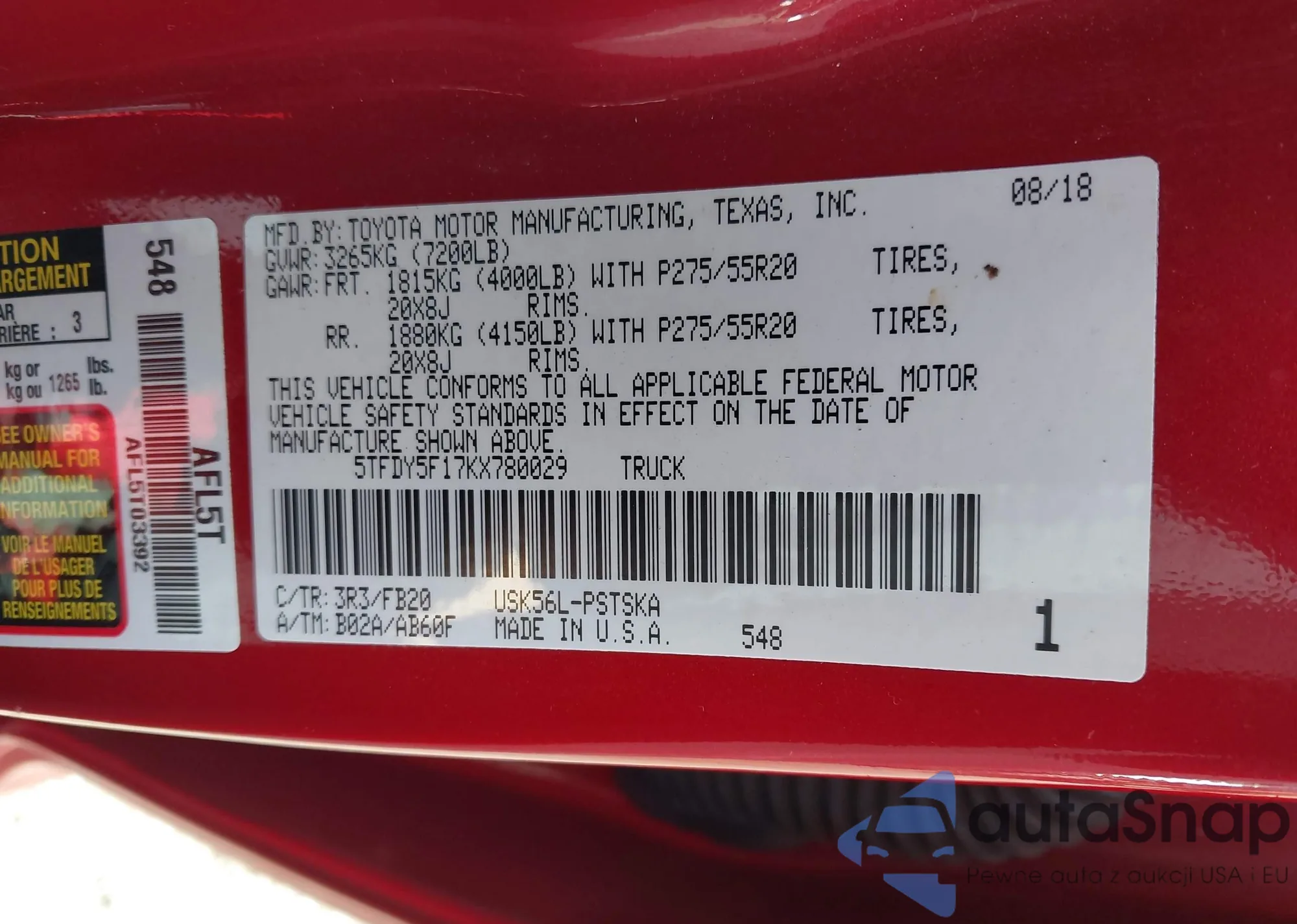 • VIN 5TFLA5DB2SX306758