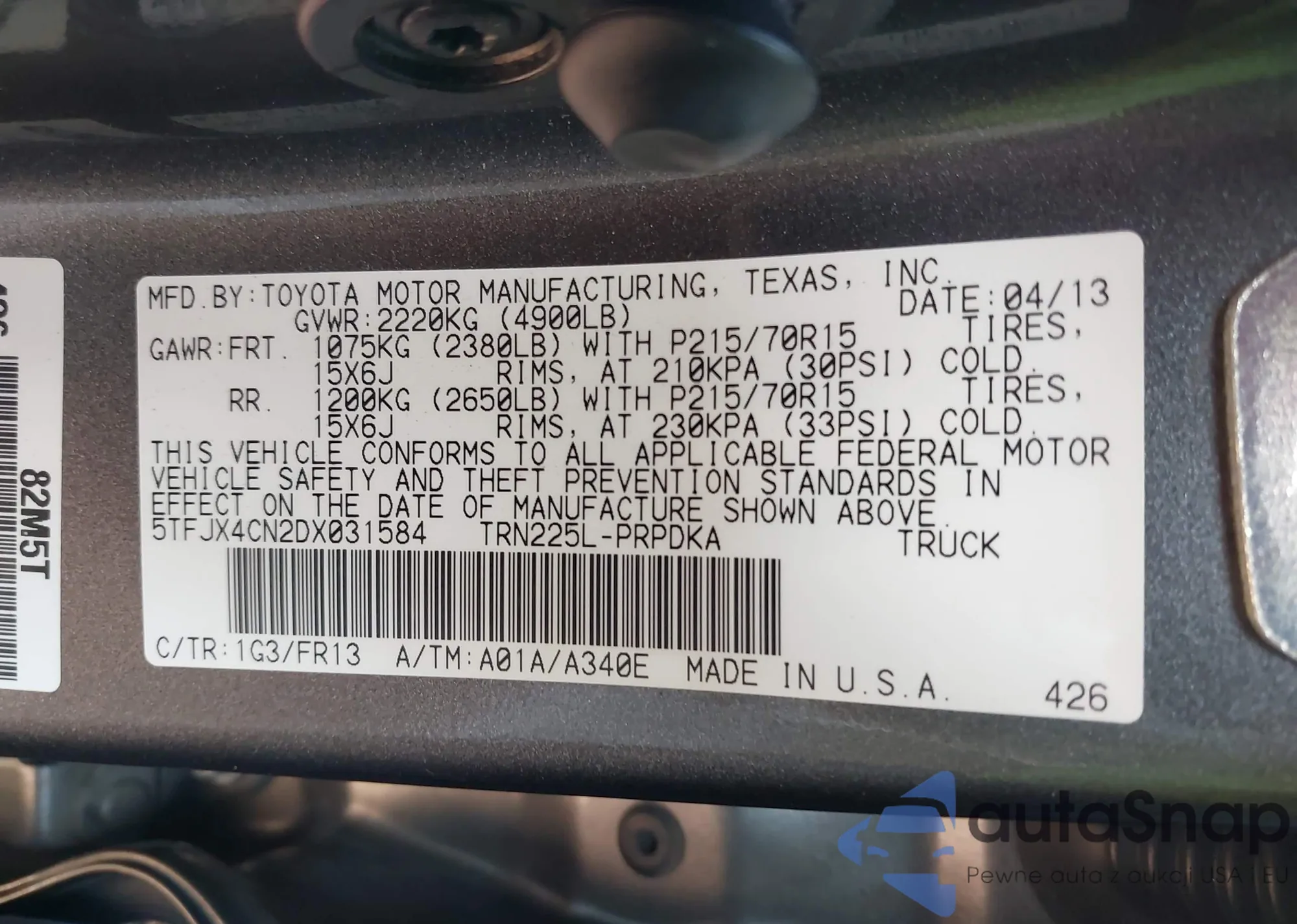 • VIN 5TFJX4CN2DX031584