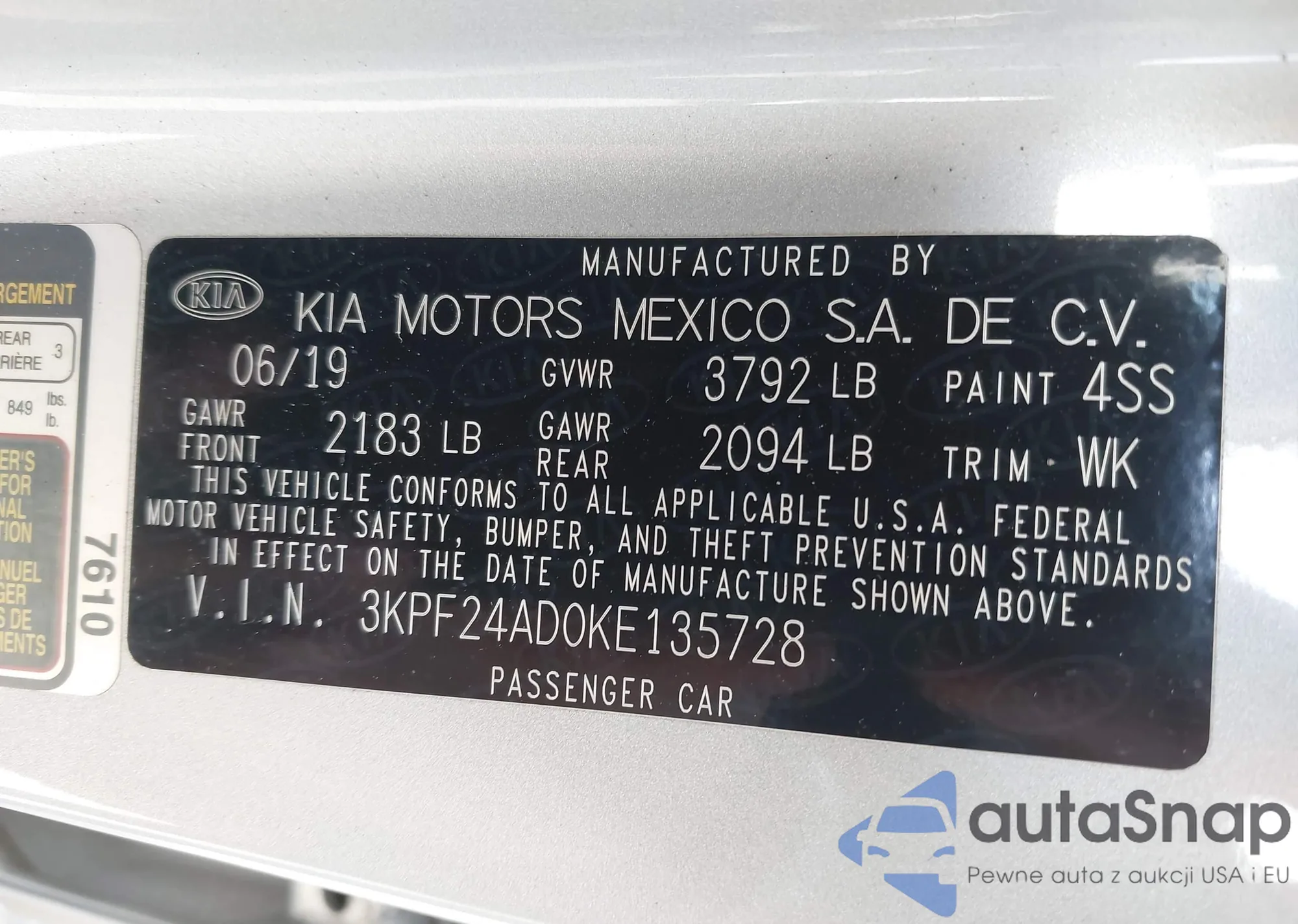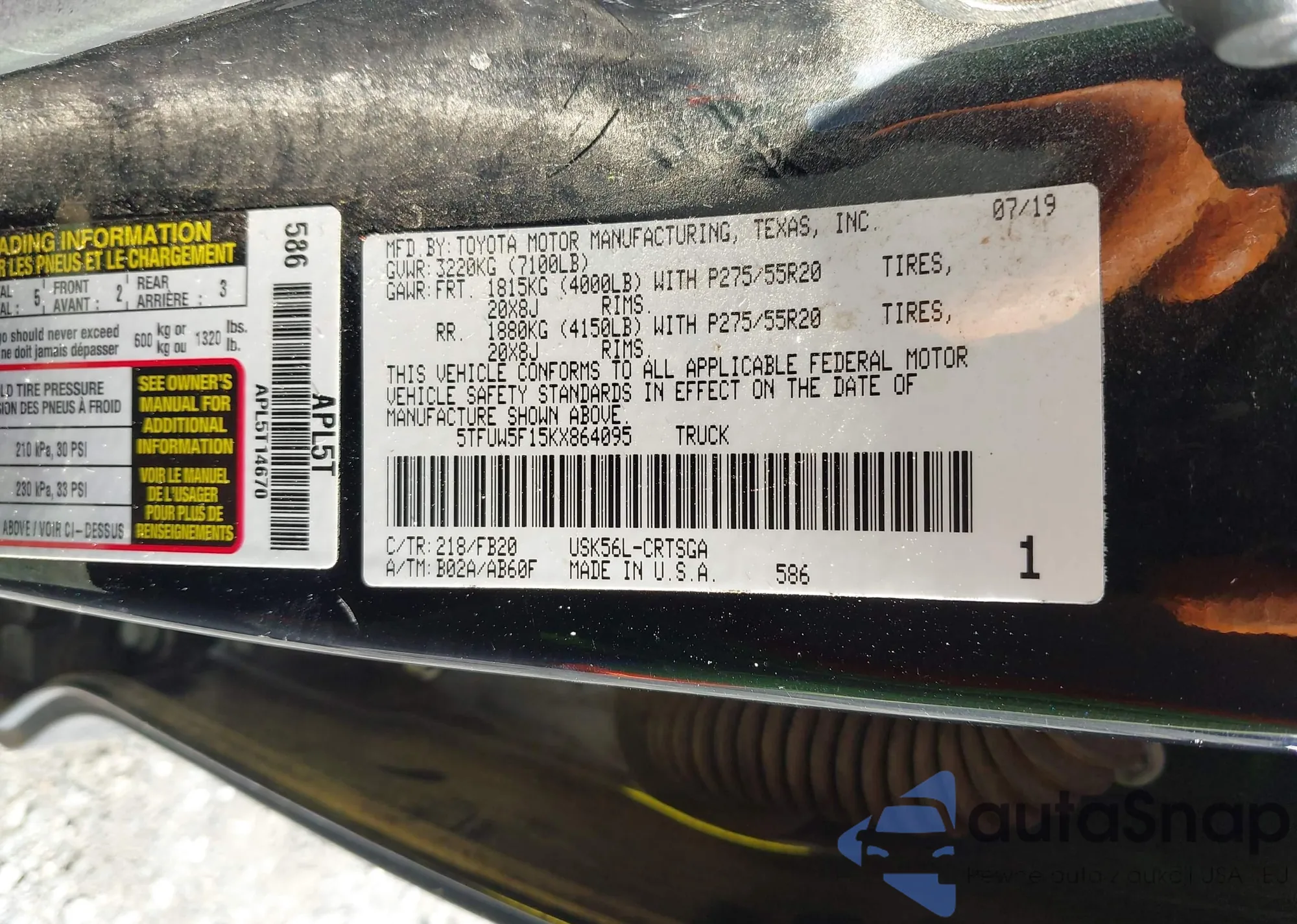• VIN 5TFUW5F15KX864095