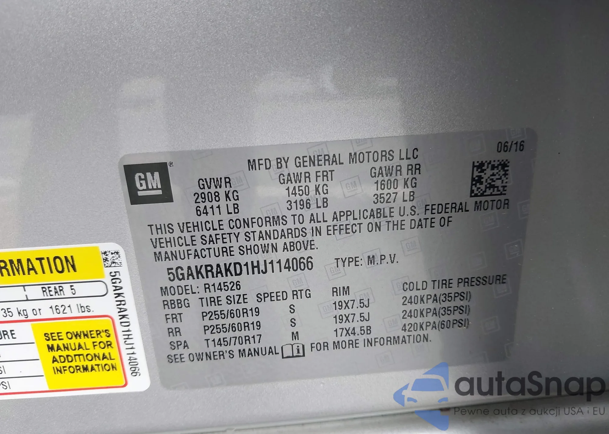 • VIN 5GAKRAKD1HJ114066