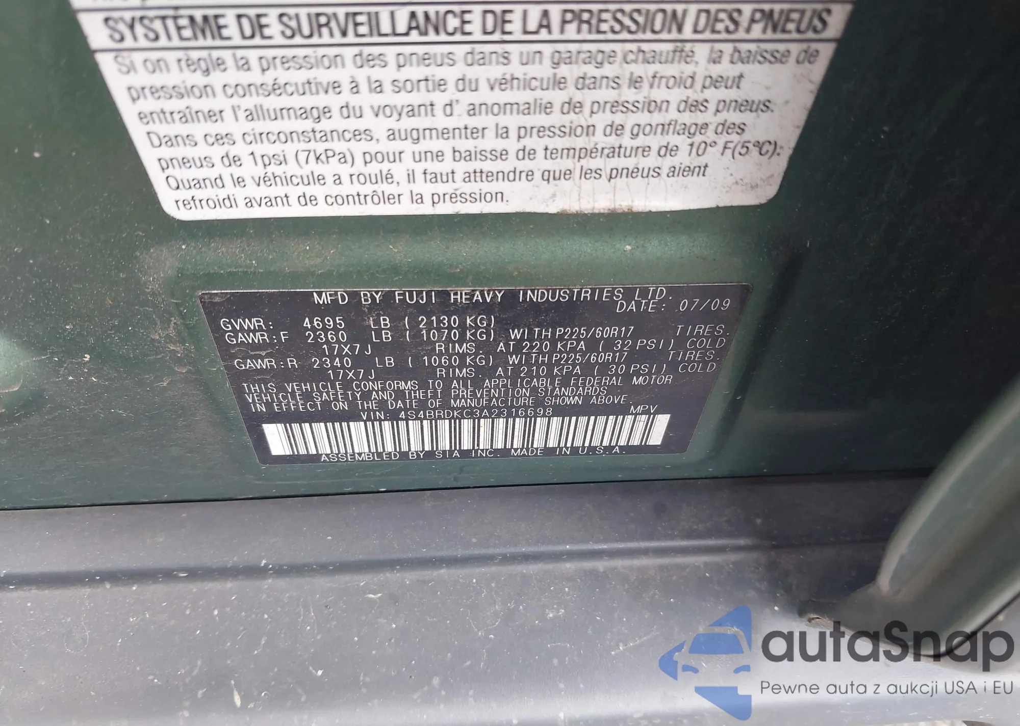 • VIN 4S4BRDKC3A2316698