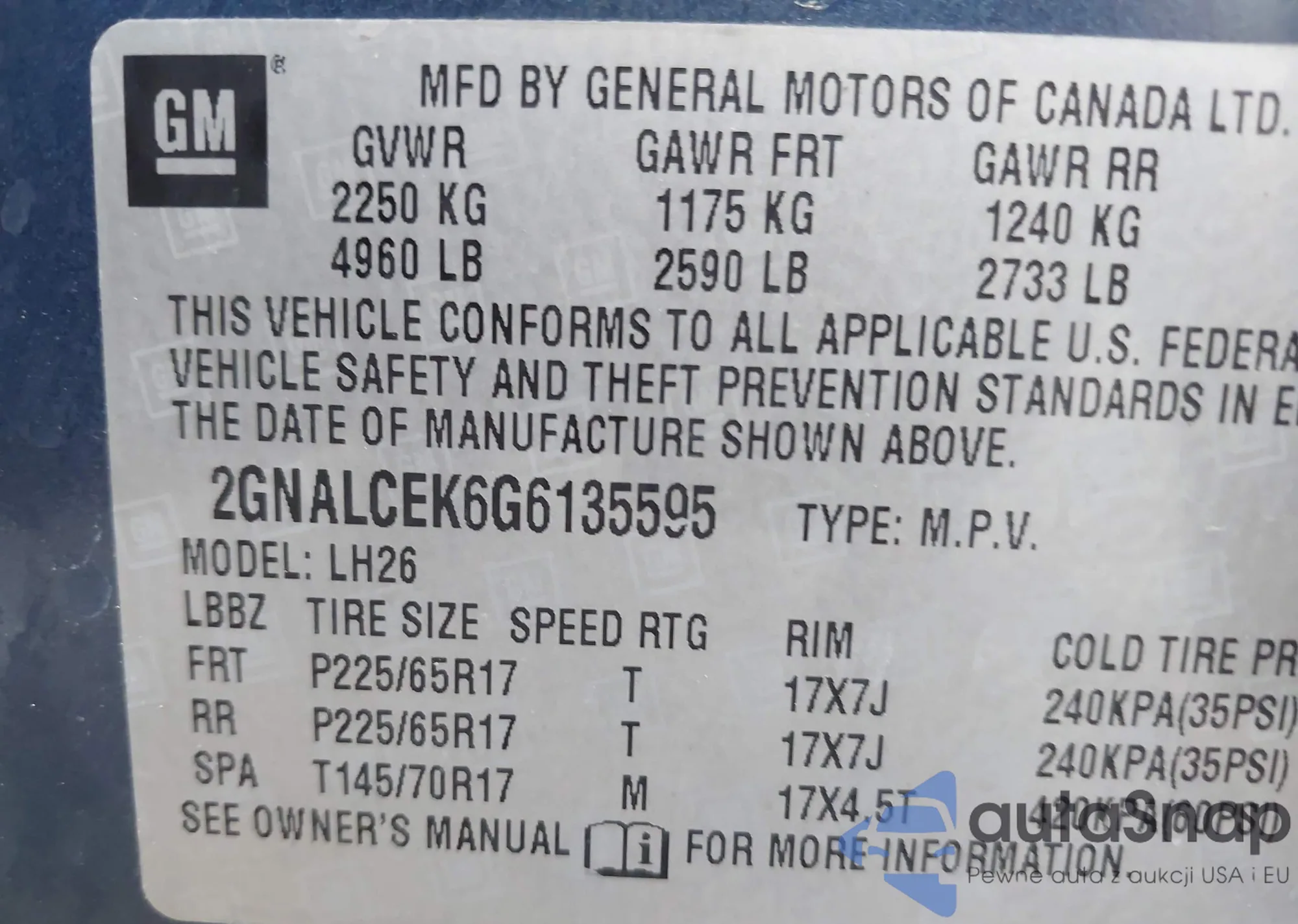 • VIN 2GNALCEK6G6135595