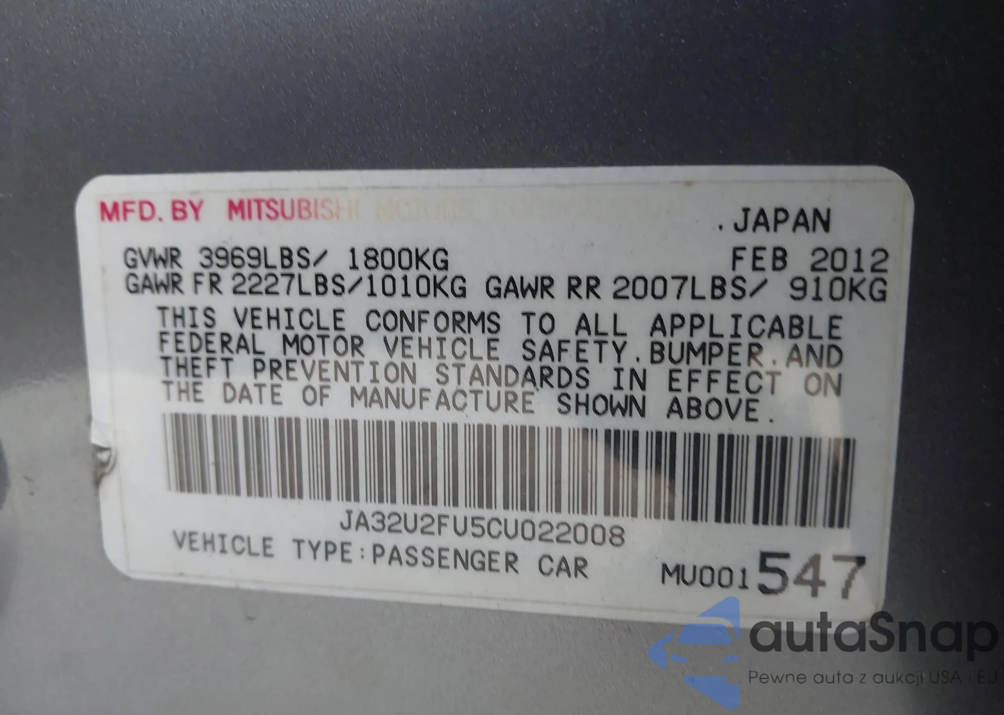 LOT: 40710595 VIN: 1N4AA5AP0AC842806