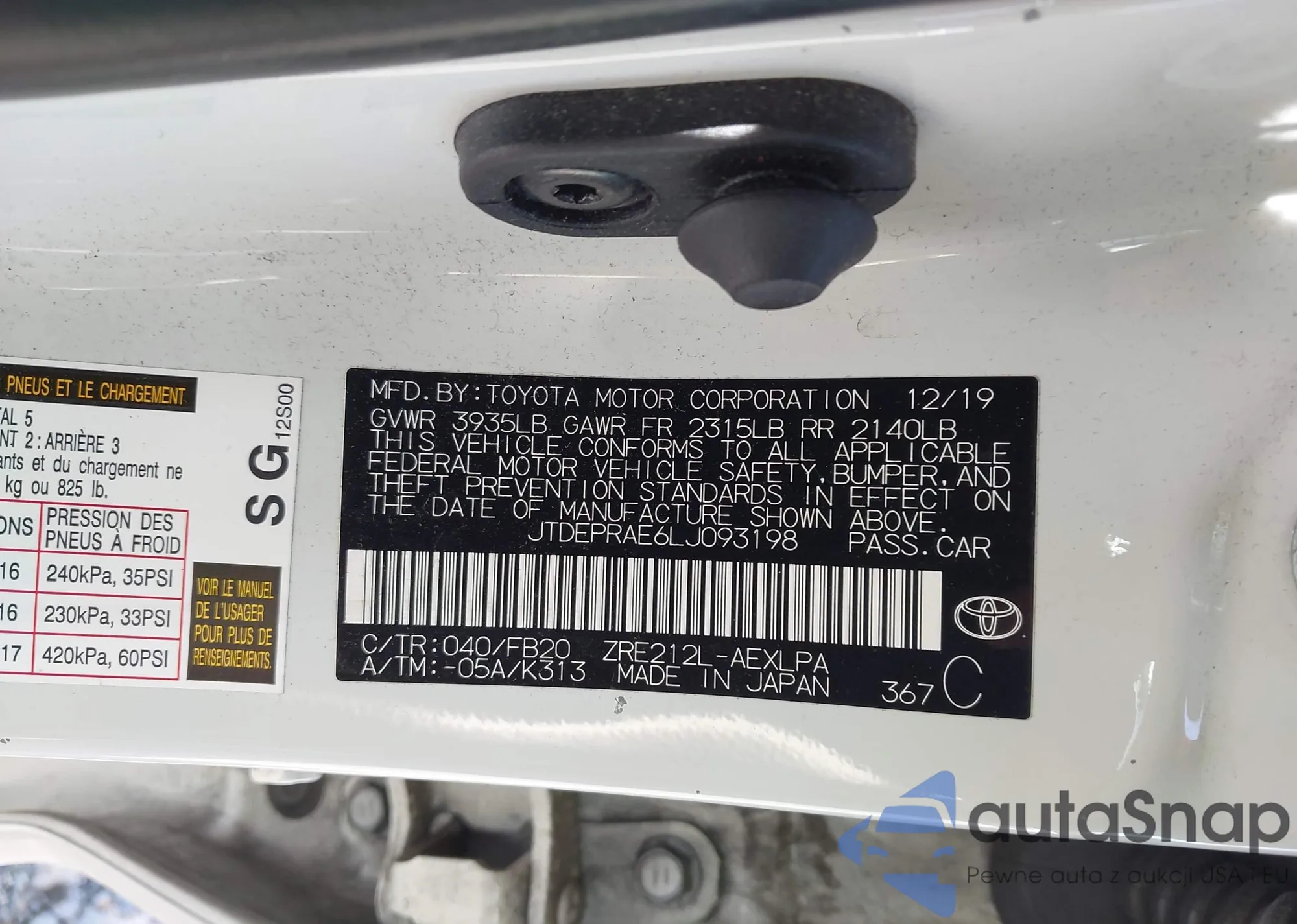 LOT: 42091169 VIN: JTDEPRAE6LJ093198