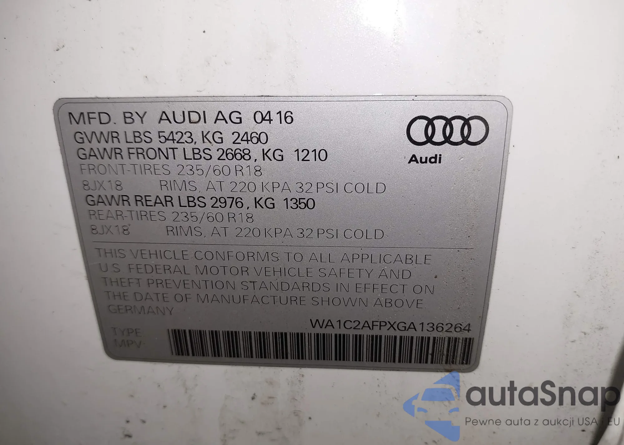 LOT: 42104350 VIN: WA1C2AFPXGA136264
