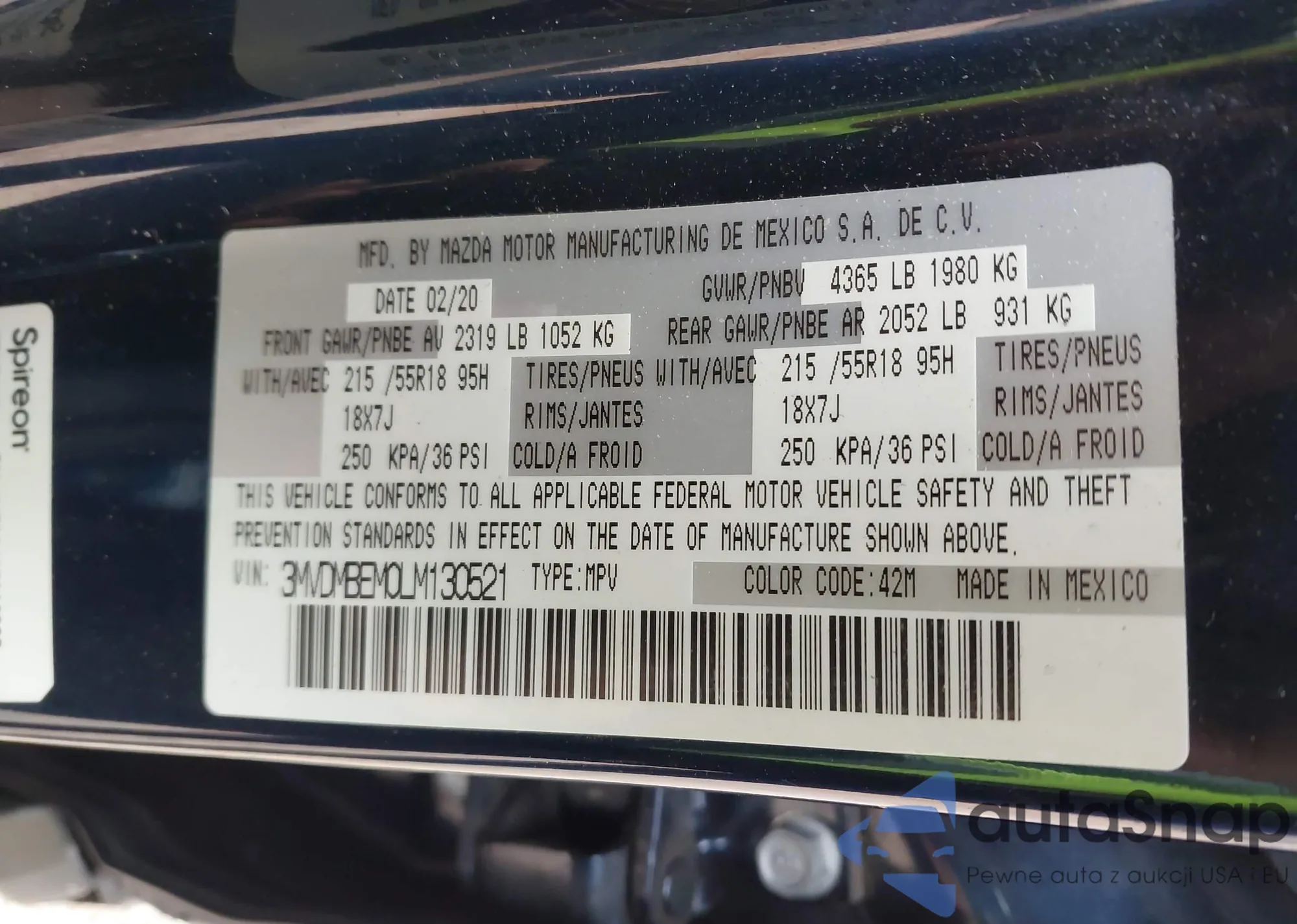LOT: 41688043 VIN: 3MVDMBEM0LM130521
