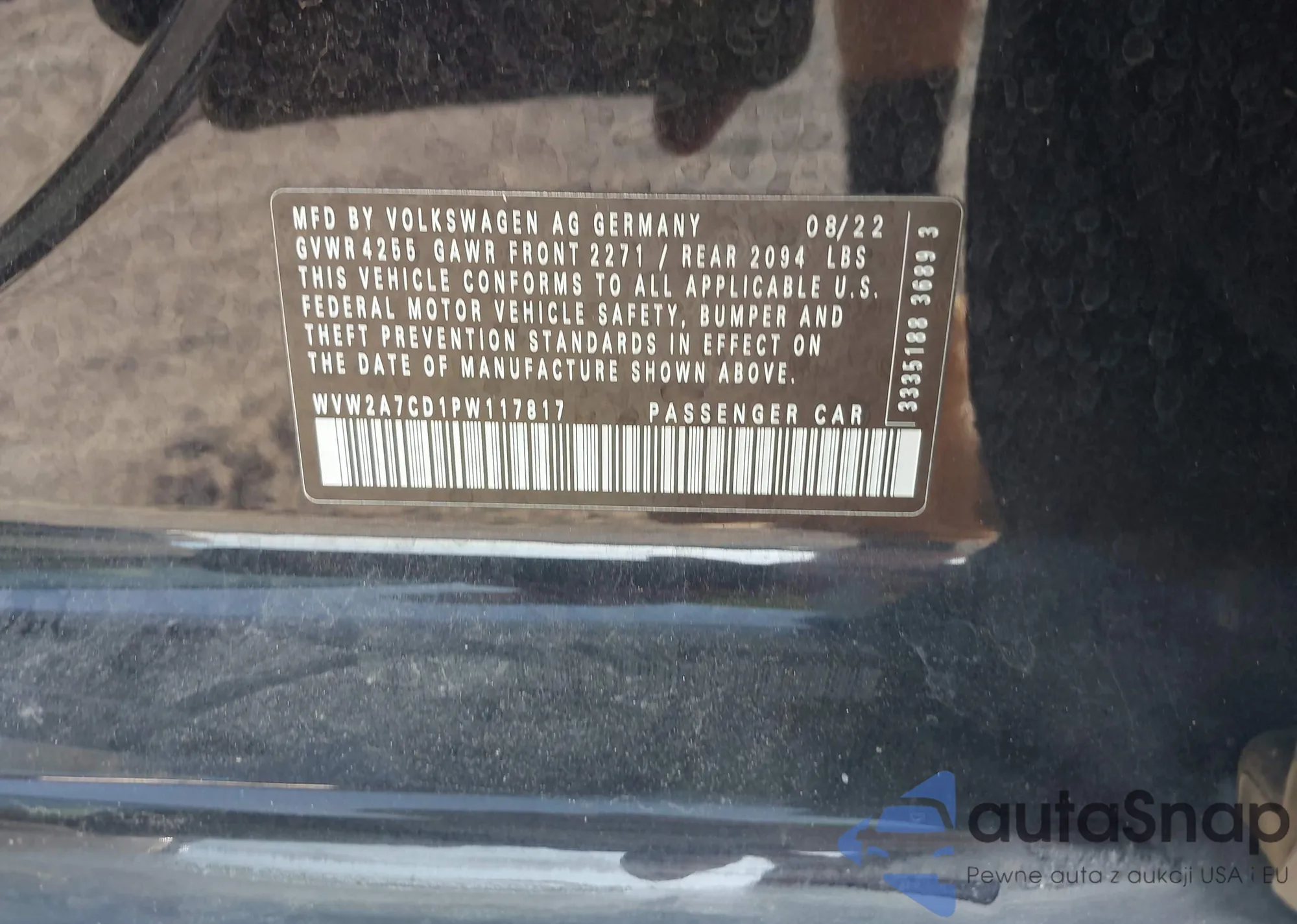 • VIN WVW2A7CD1PW117817