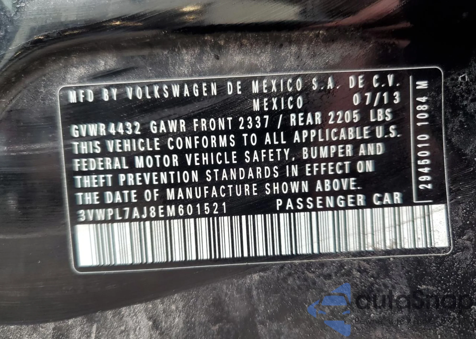 • VIN 3VWPL7AJ8EM601521