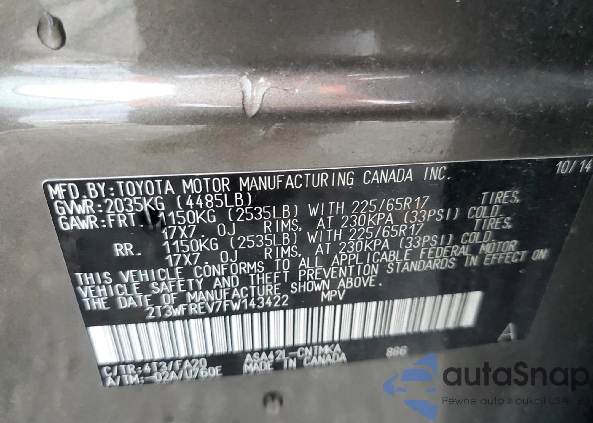 • VIN 1VWAT7A31FC086081