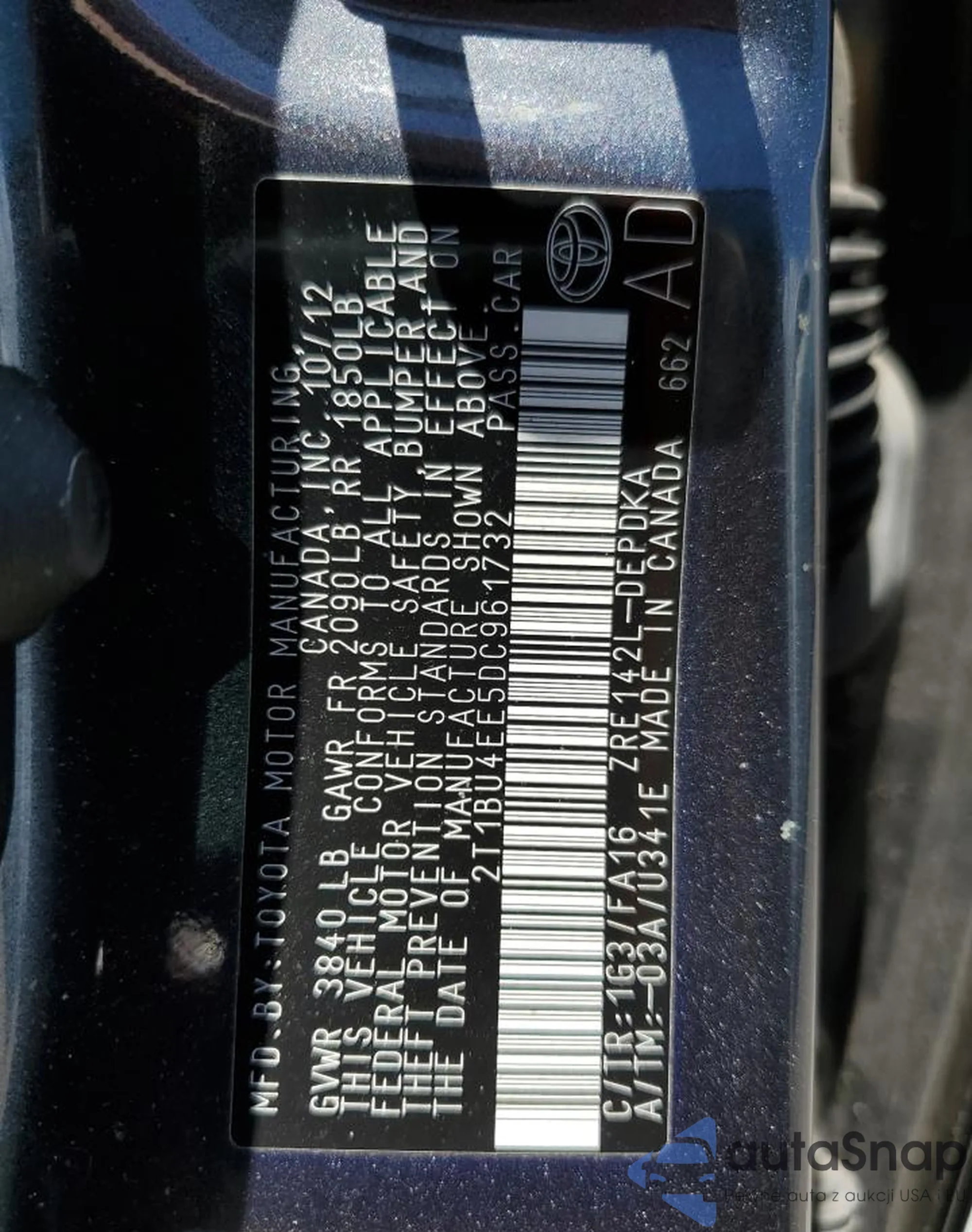 LOT: 65379985 VIN: 2T1BU4EE5DC042569