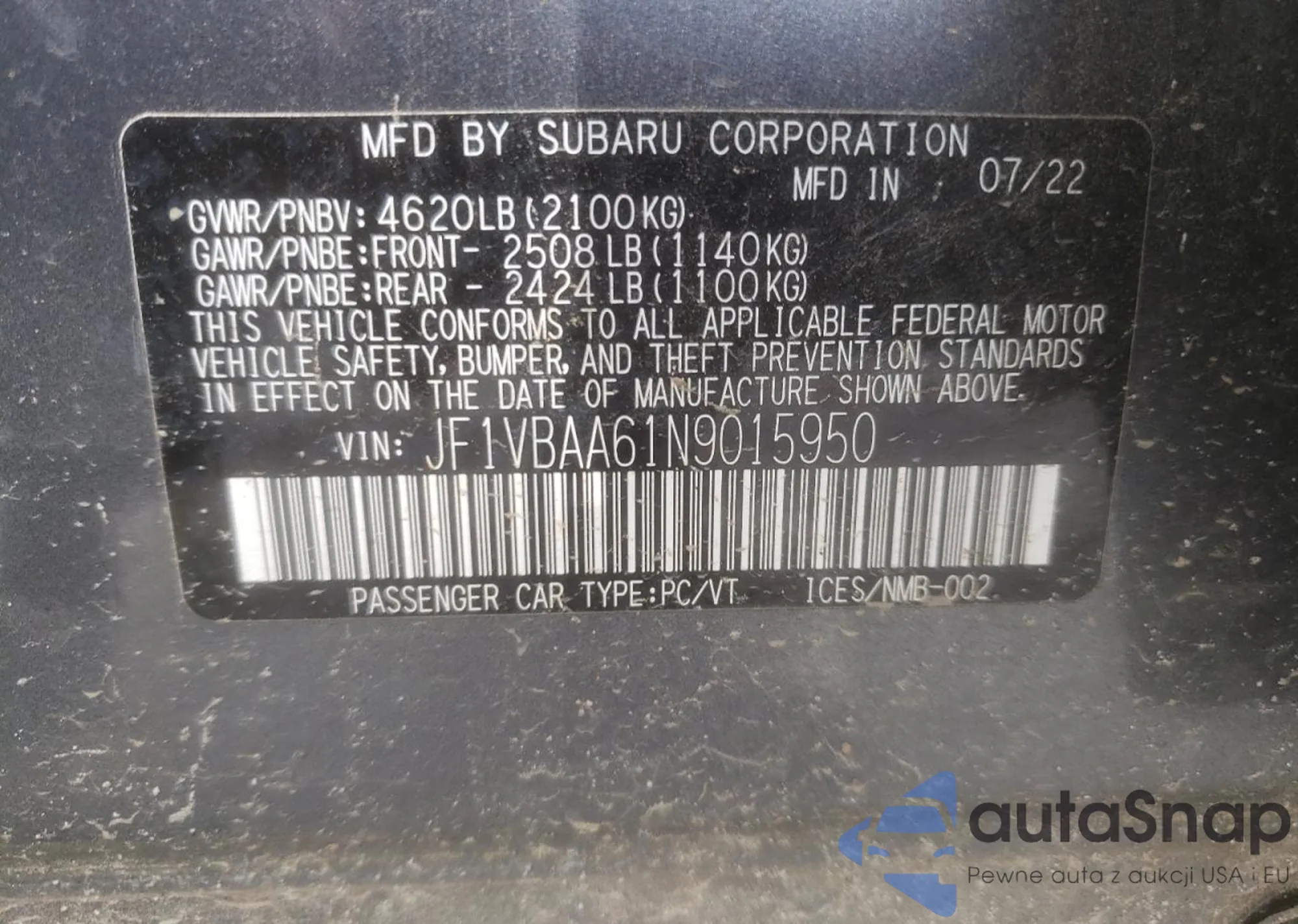 LOT: 60908175 VIN: JF1VBAA61N9015950