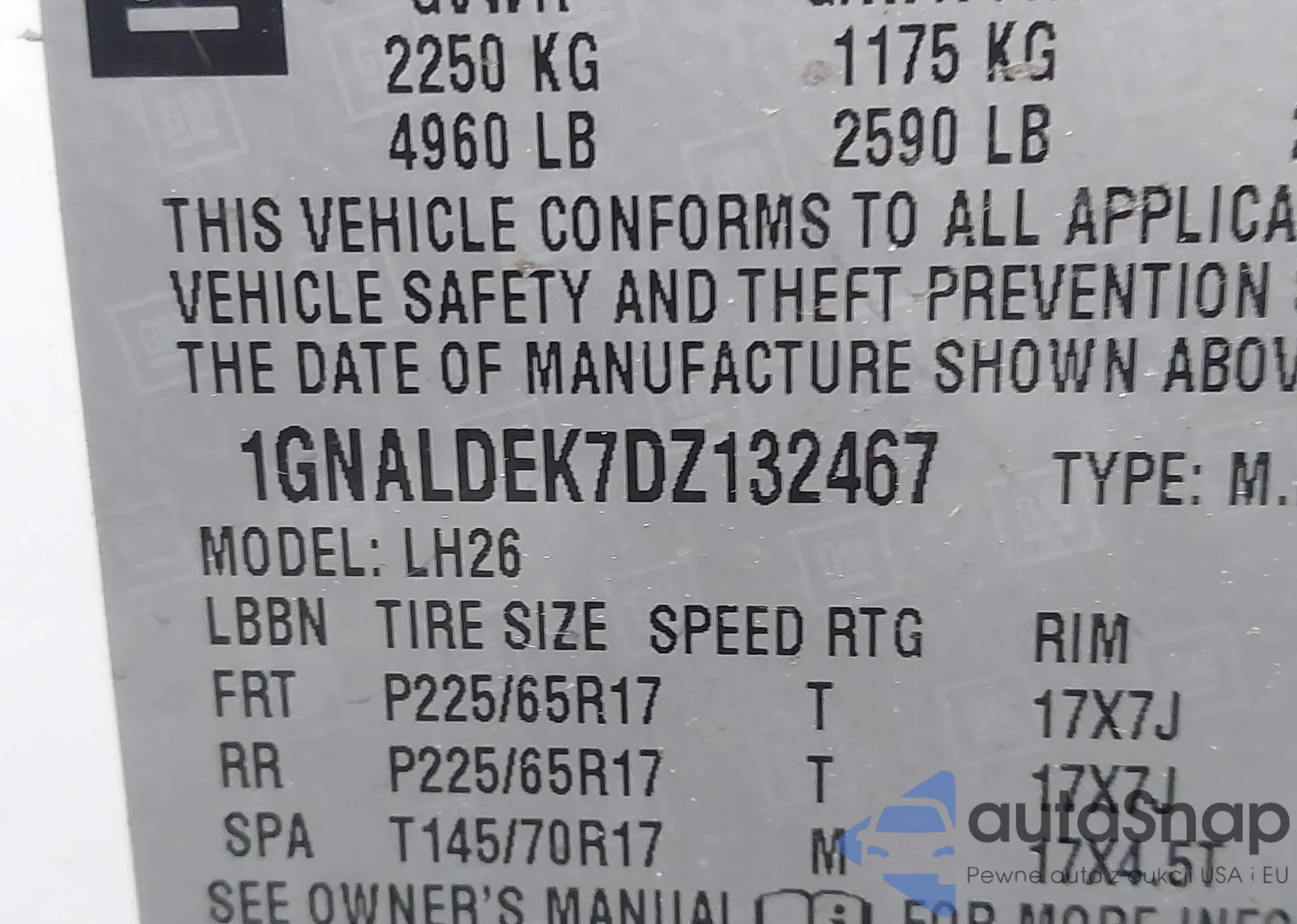LOT: 42953575 VIN: 1GNALDEK7DZ132467