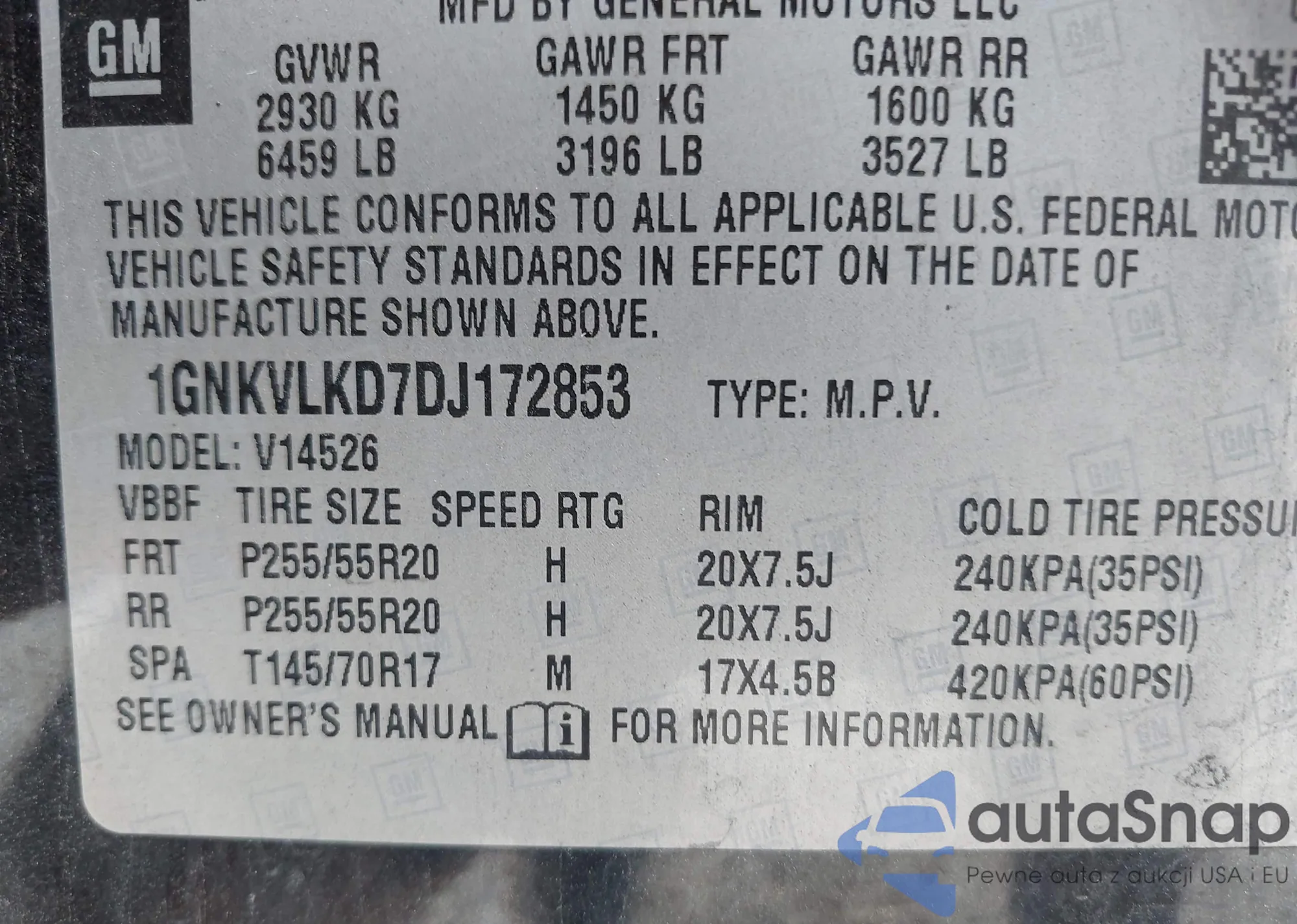 • VIN 1GNKVLKD7DJ172853