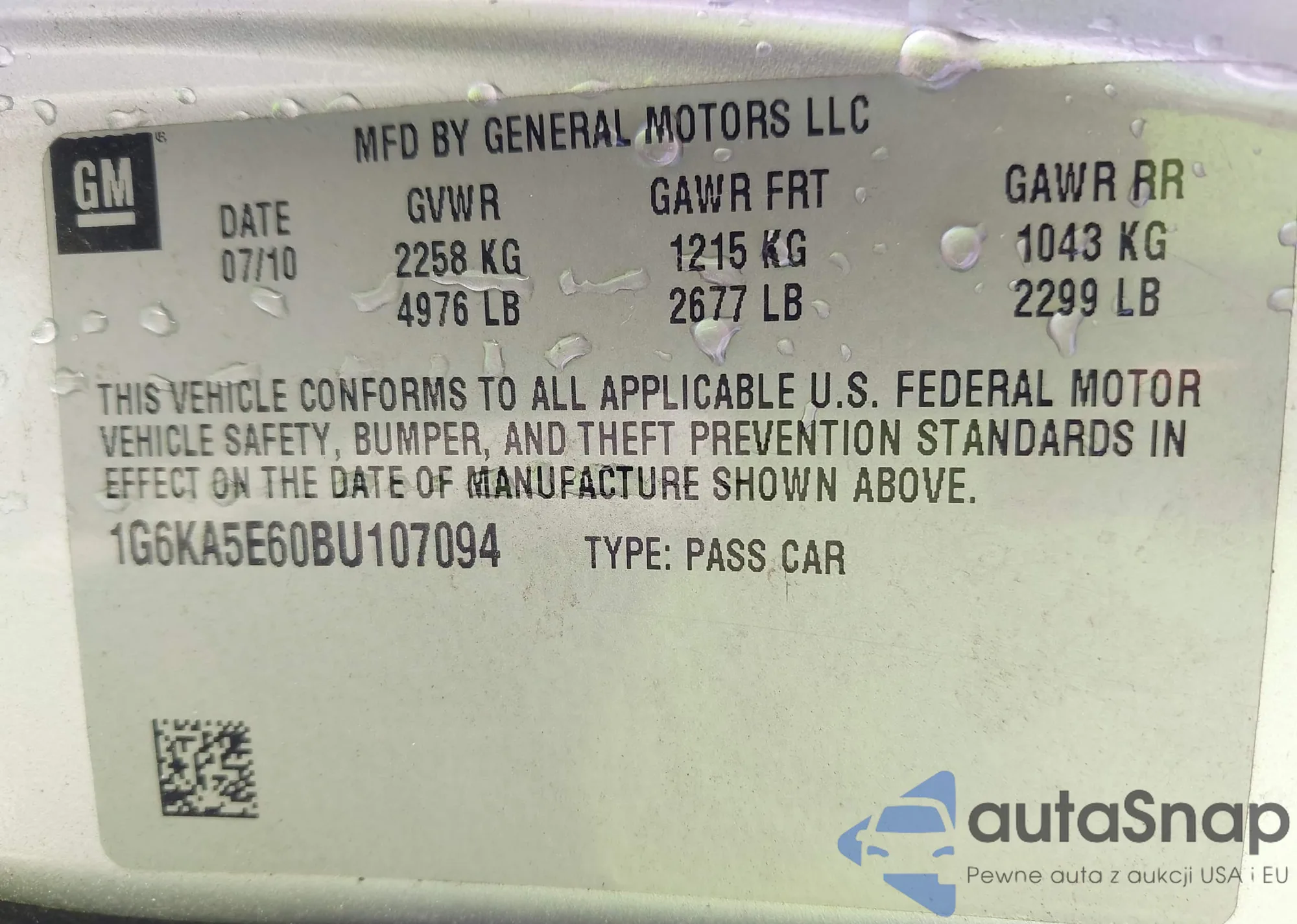 • VIN 1G6KA5E60BU107094