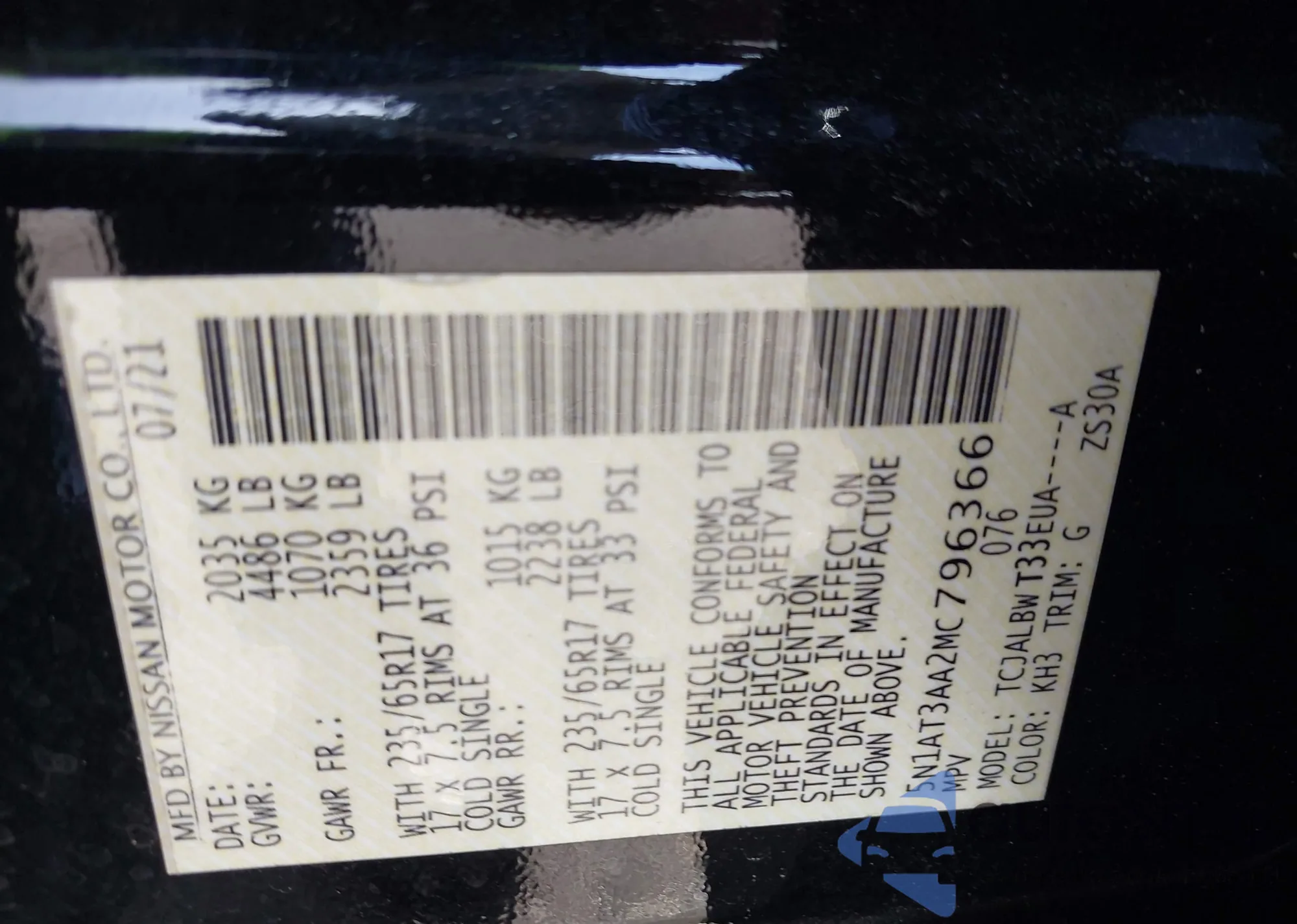 • VIN 5N1AT3AA2MC796366