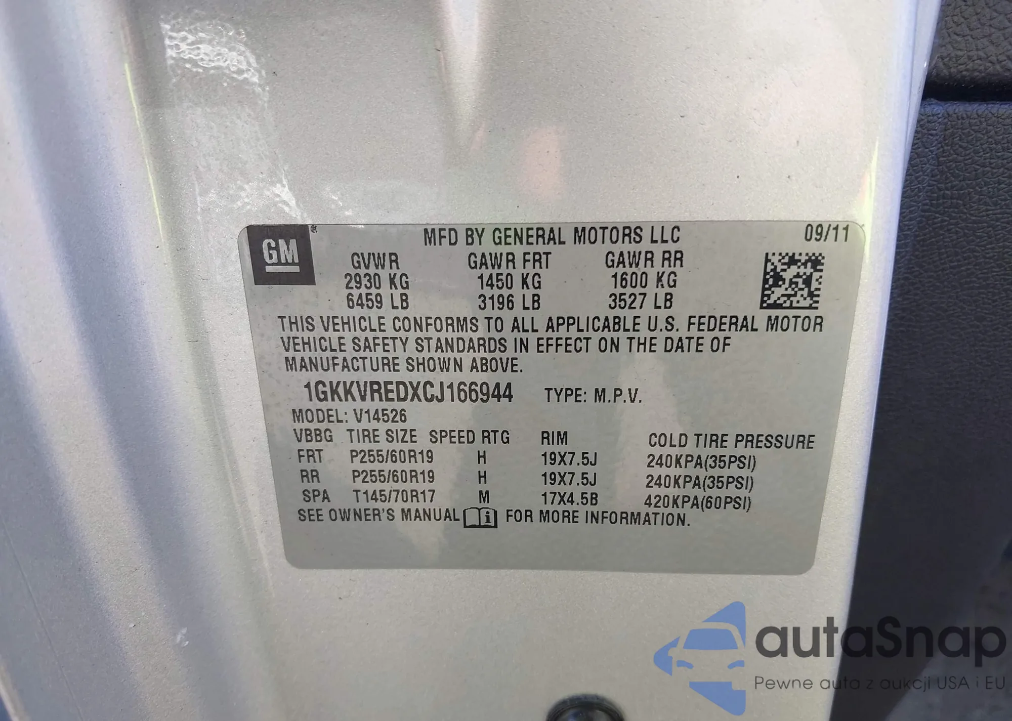 • VIN 1GKKVREDXCJ166944