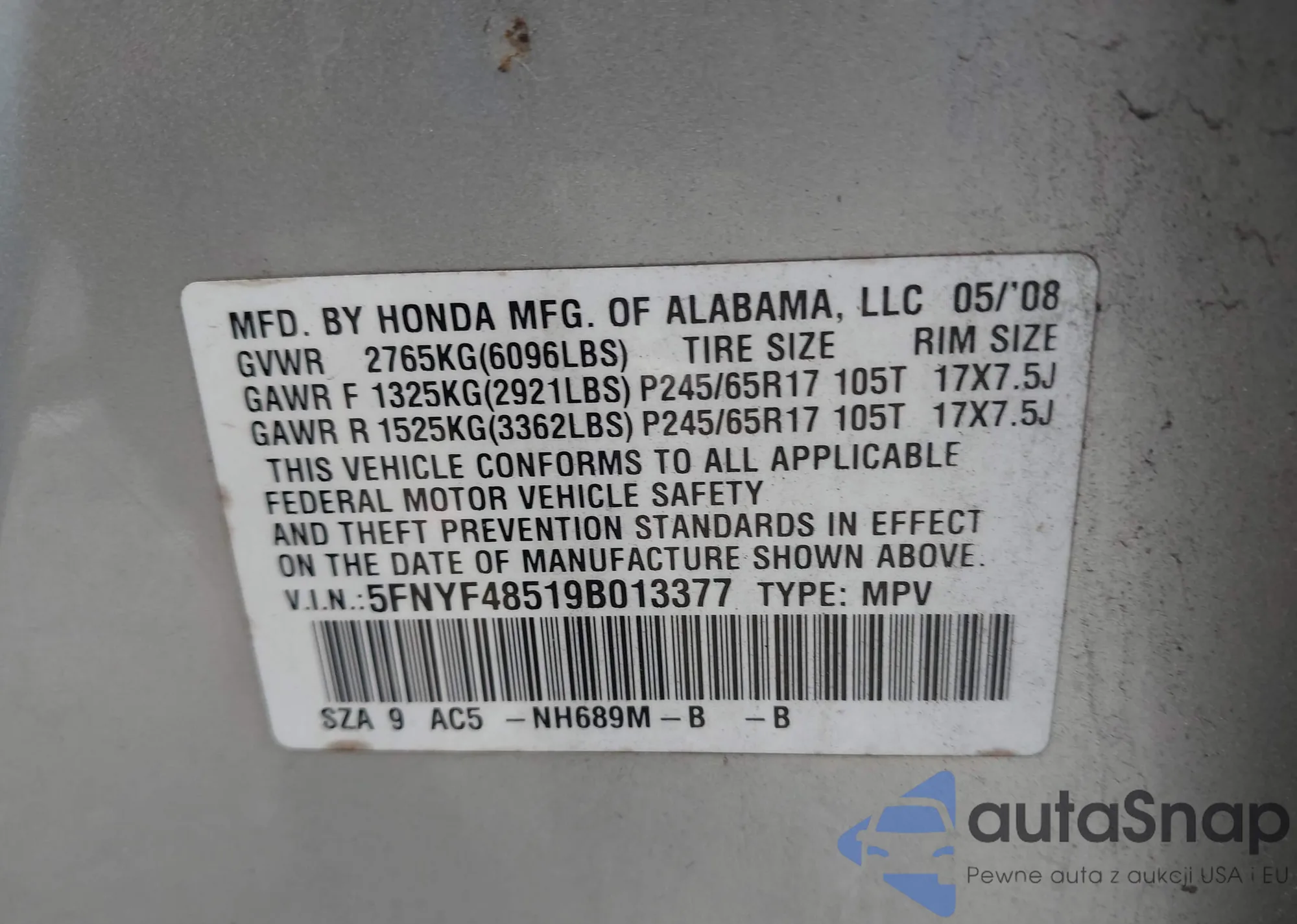• Lot number 42285062