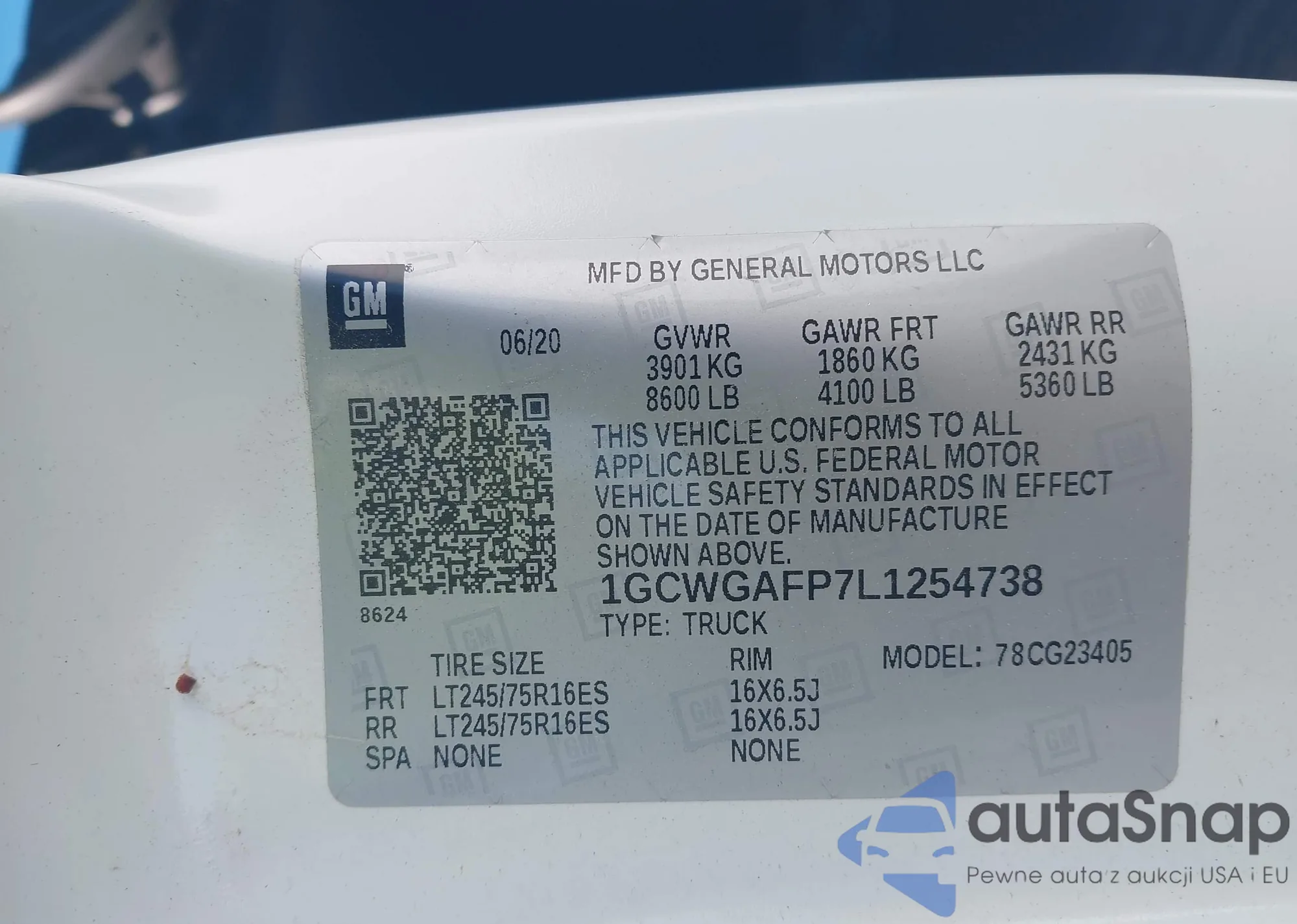LOT: 42937574 VIN: 1GCWGAFP7L1254738