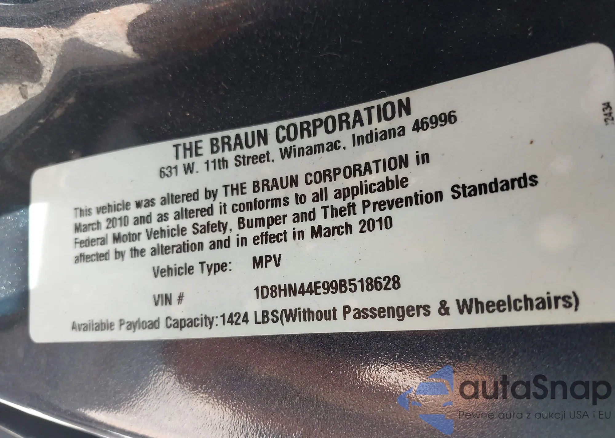• VIN 1D8HN44E99B518628