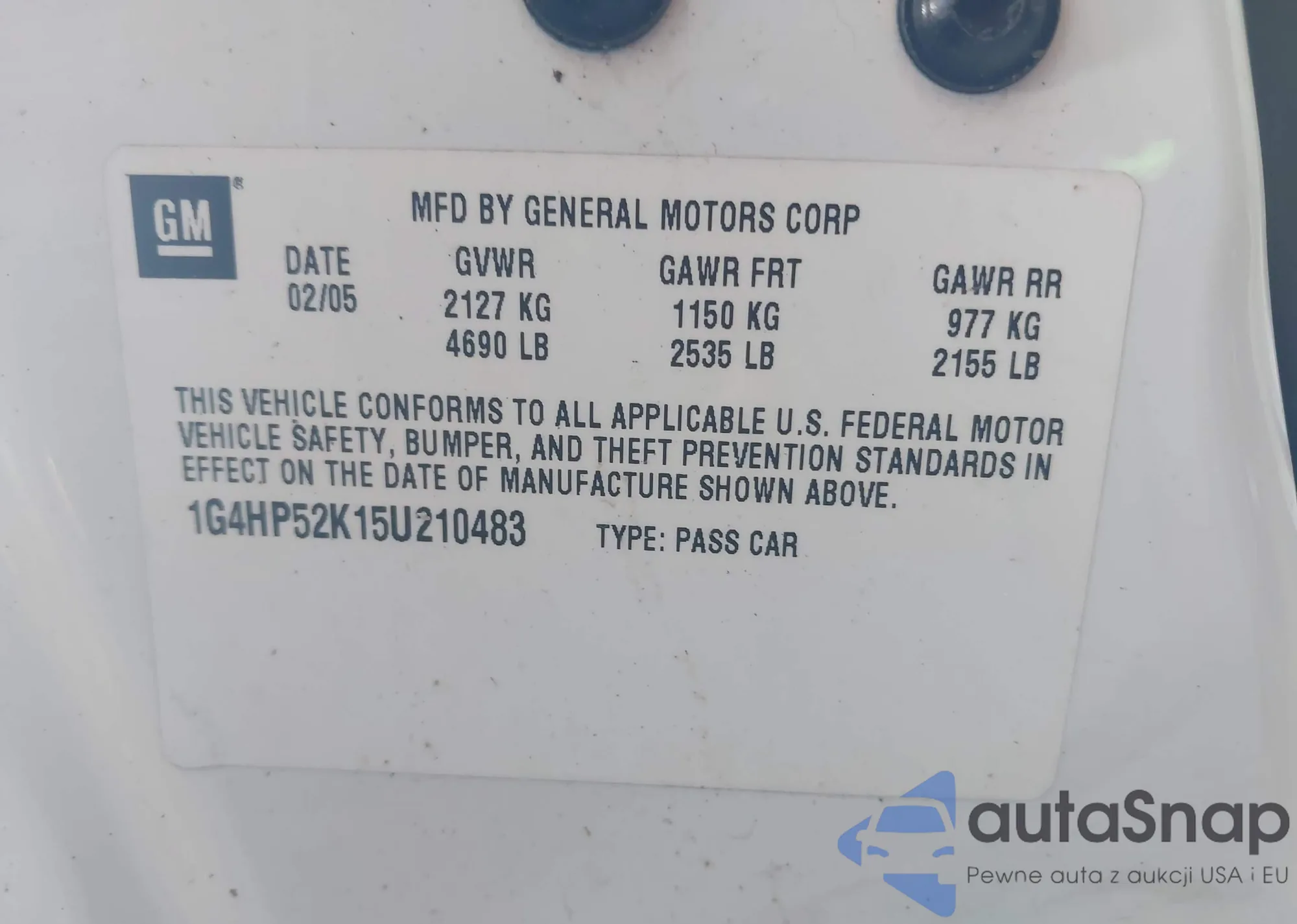 • VIN 1G4HP52K15U210483