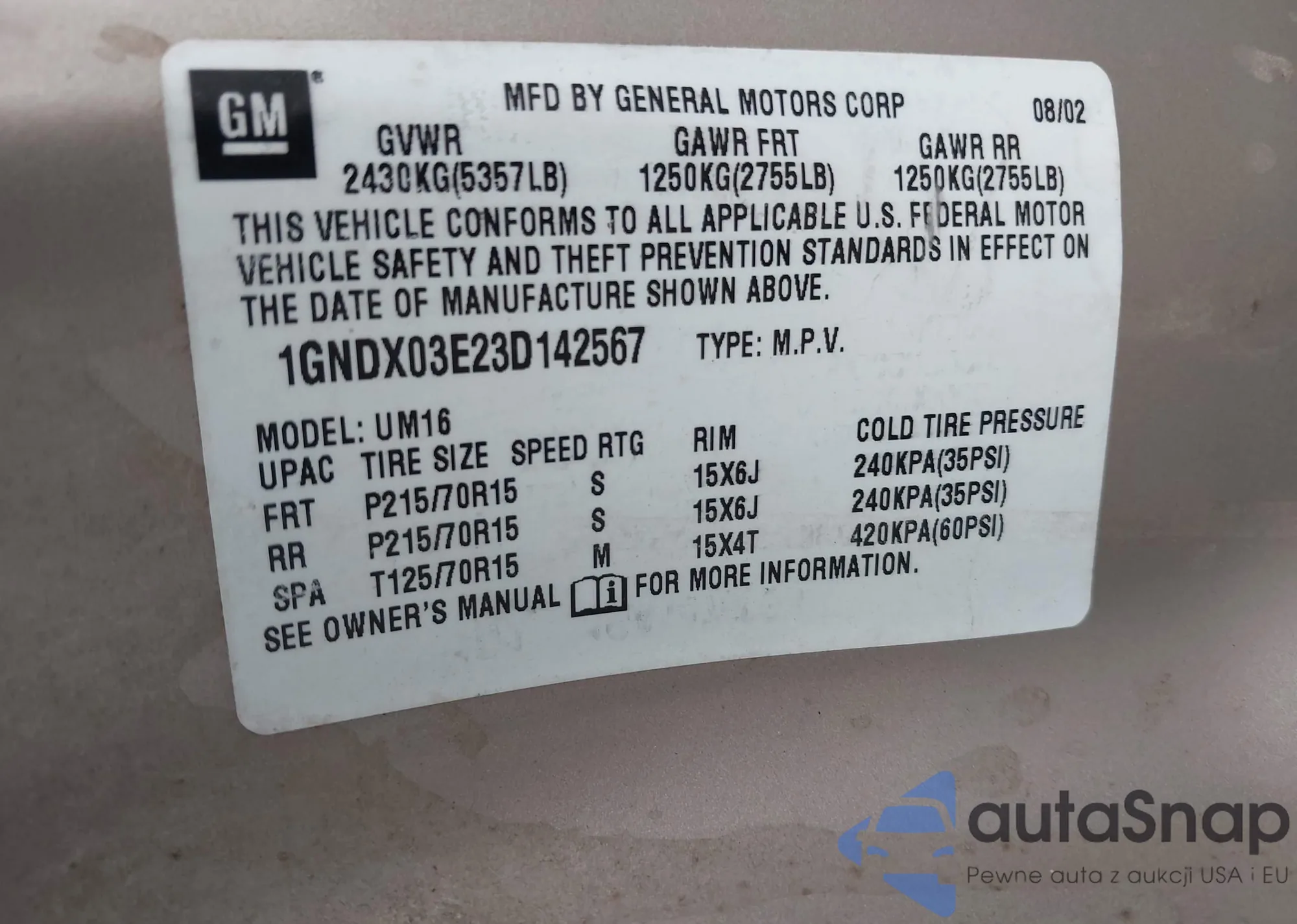 • VIN 1GNDX03E23D142567