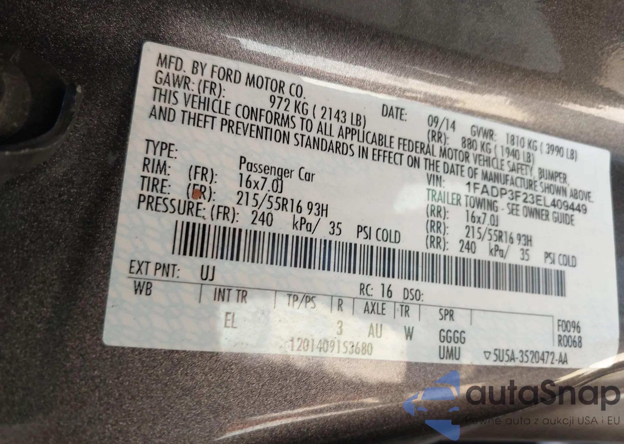 LOT: 42831948 VIN: 1FADP3F23EL409449