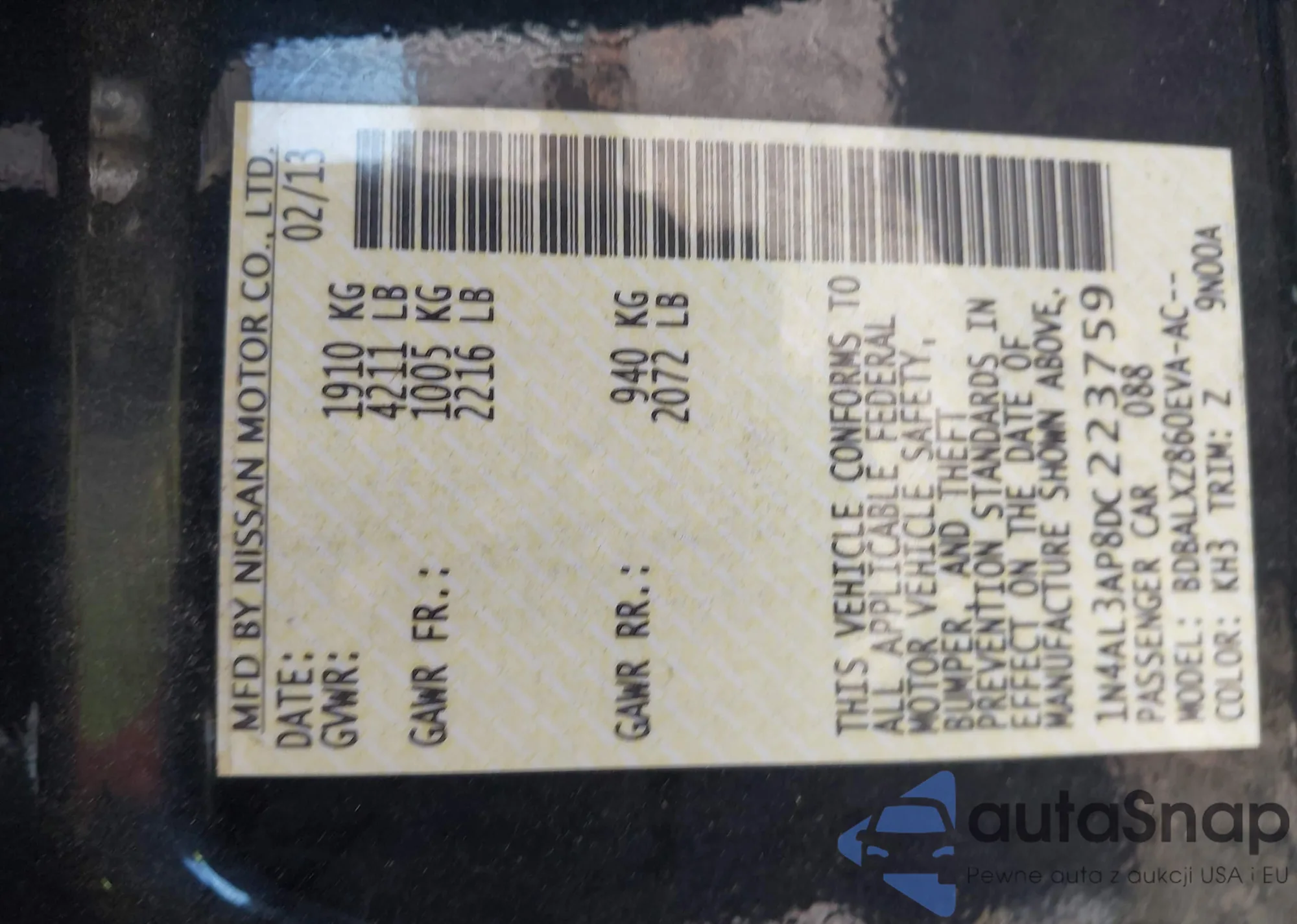 LOT: 42687263 VIN: KMUMADTB8NU050001