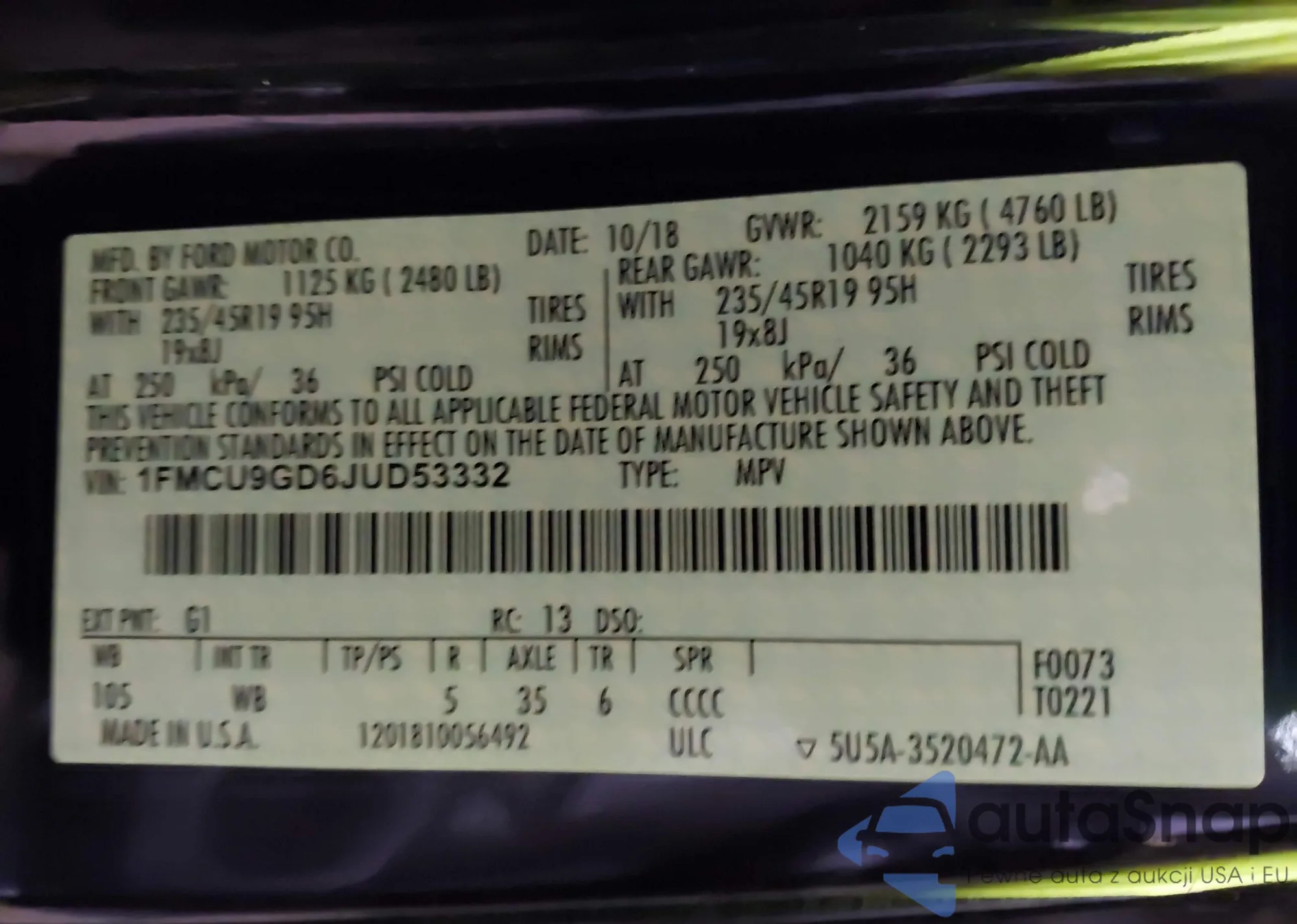 • VIN 1FMCU9GD6JUD53332
