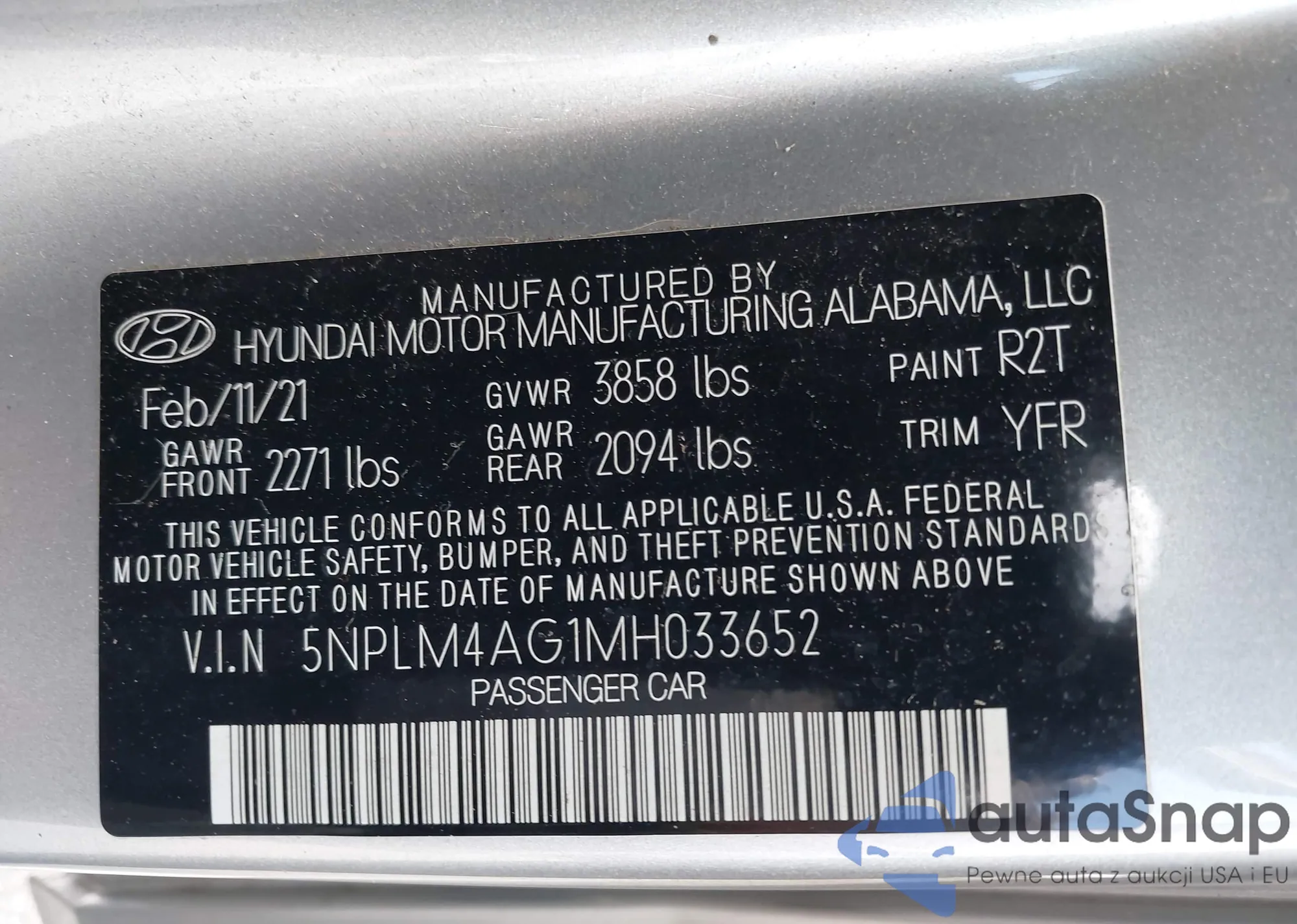 • VIN 5NPLM4AG1MH033652