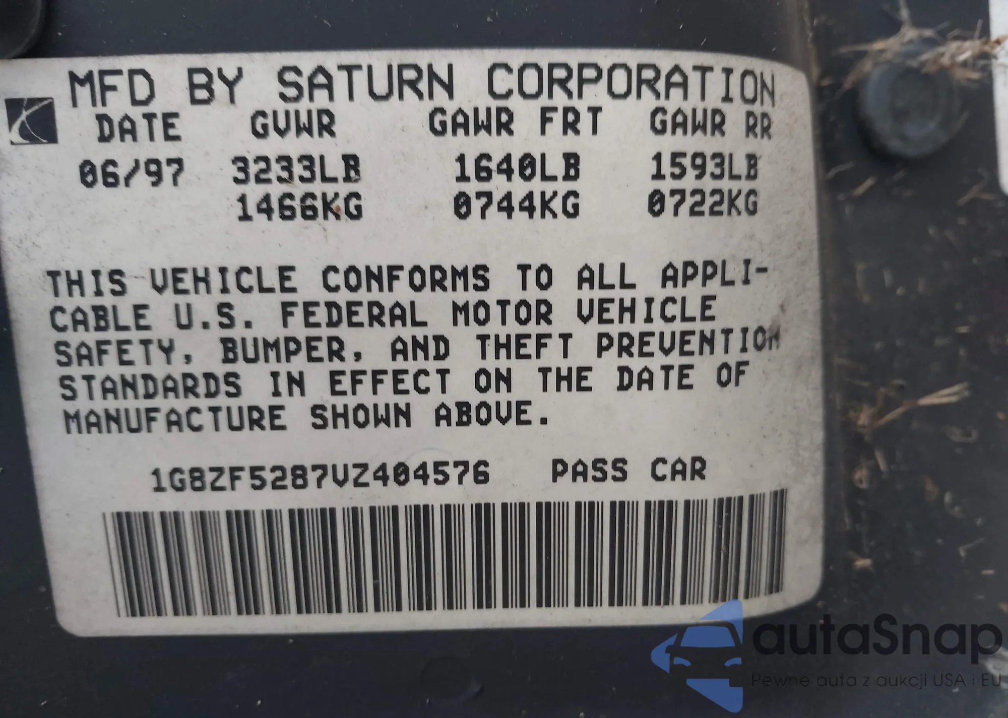 • VIN 1G8ZF5287VZ404576