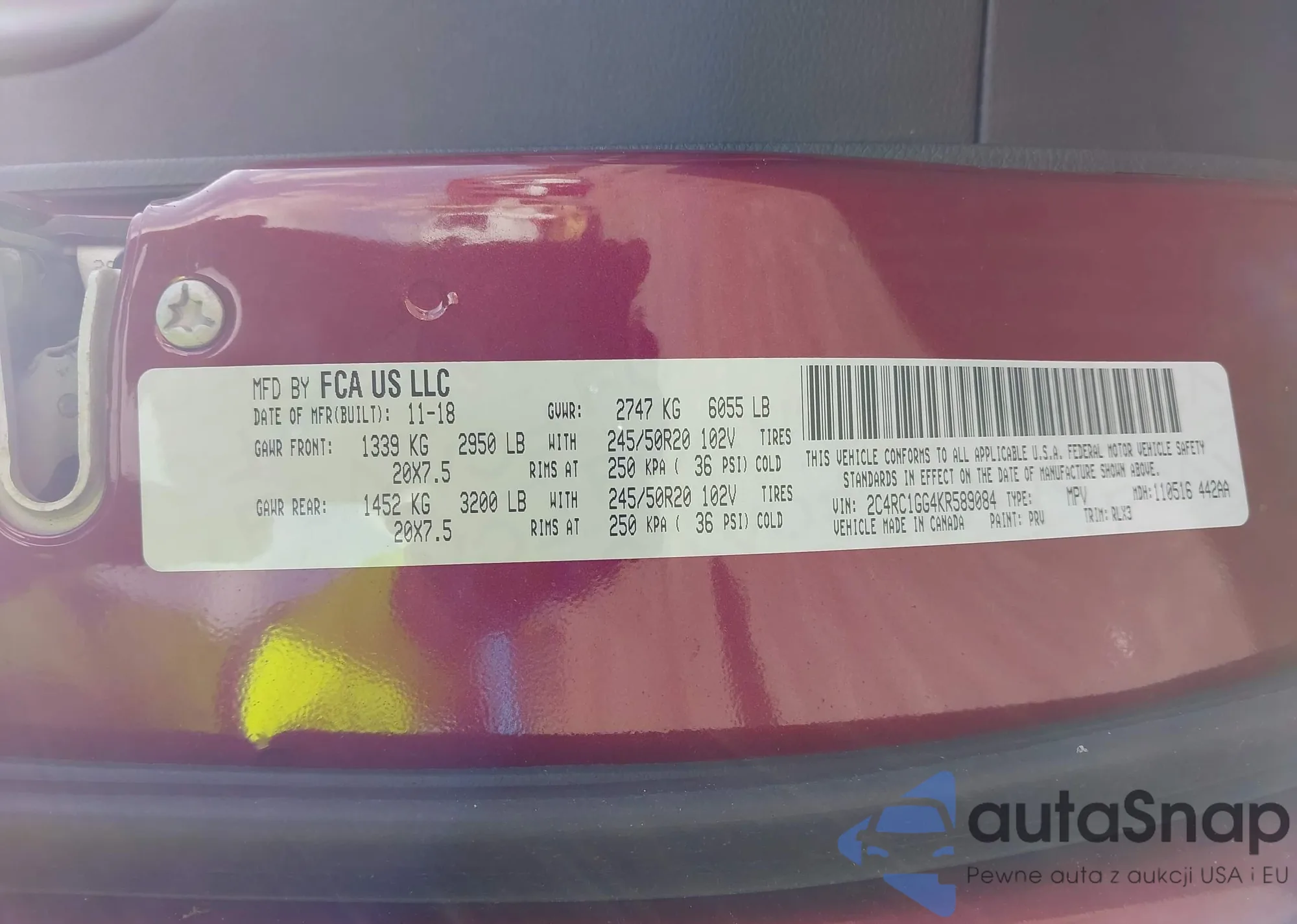 • VIN 2C4RC1GG4KR589084