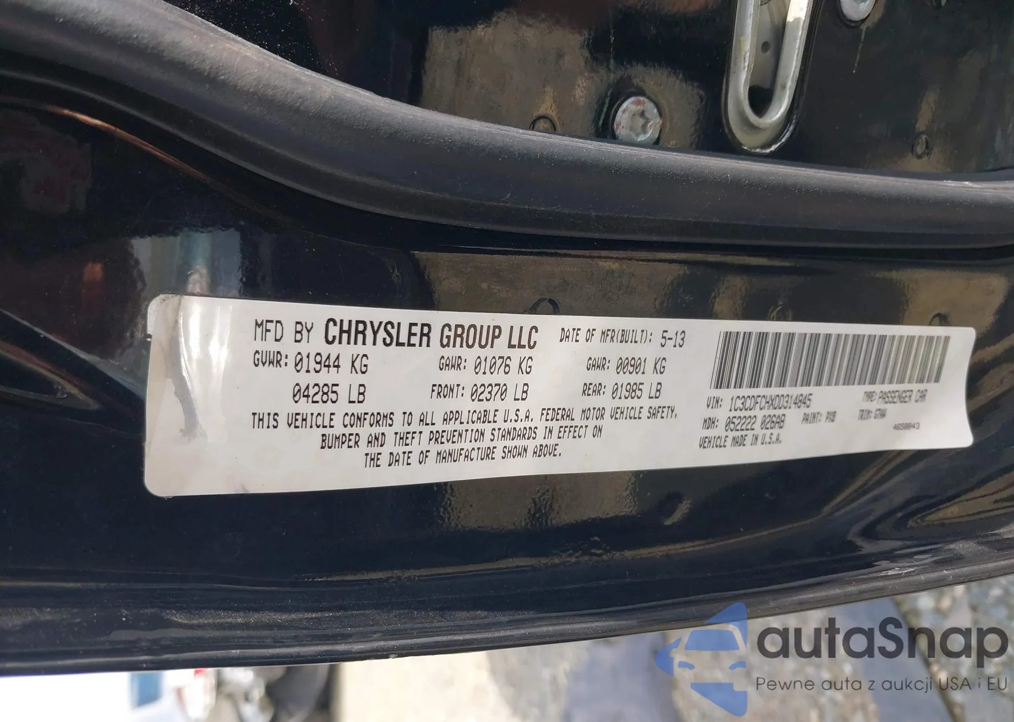 • VIN 1C3CDFCHXDD314845