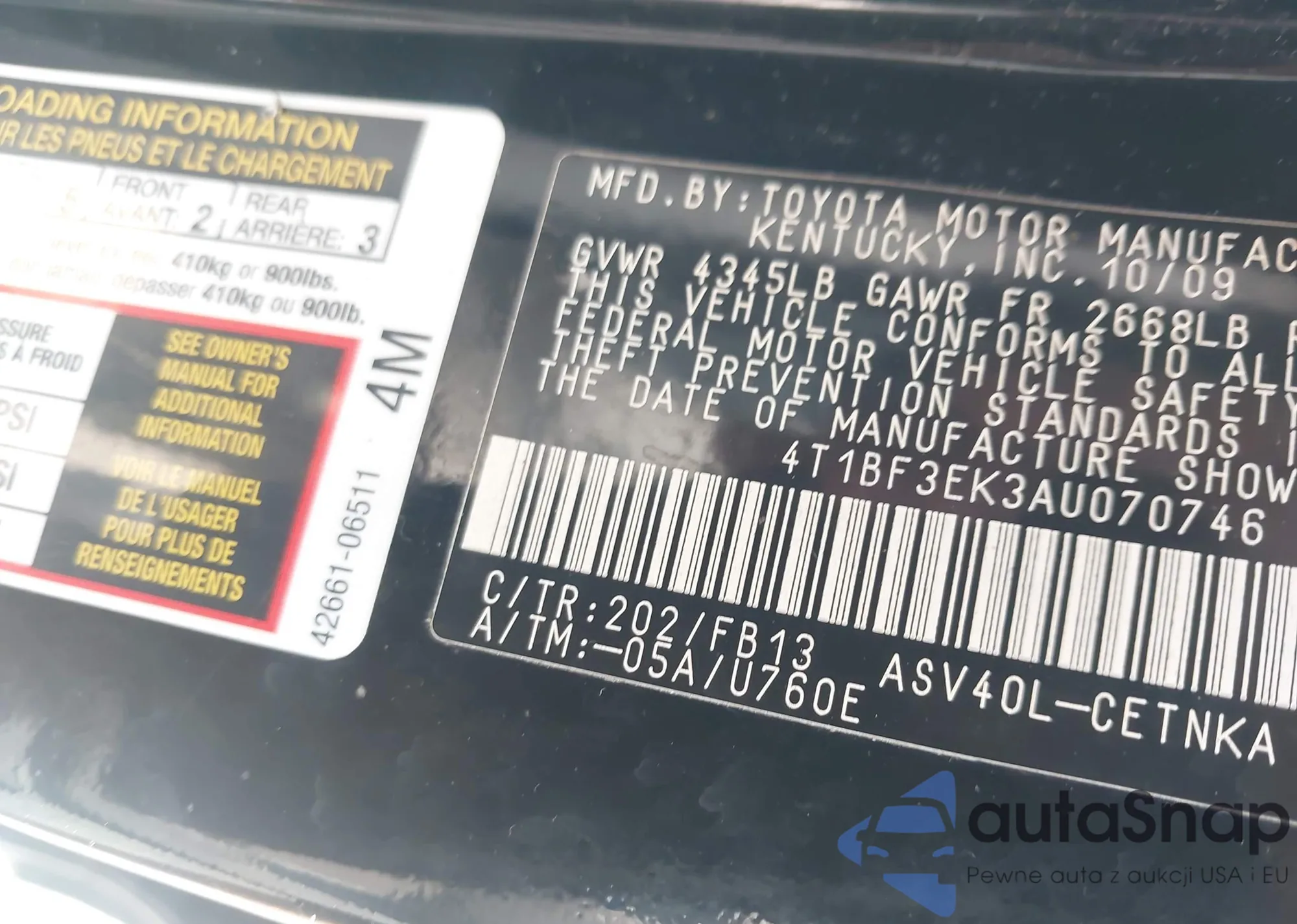 • VIN 4T1BF3EK3AU070746