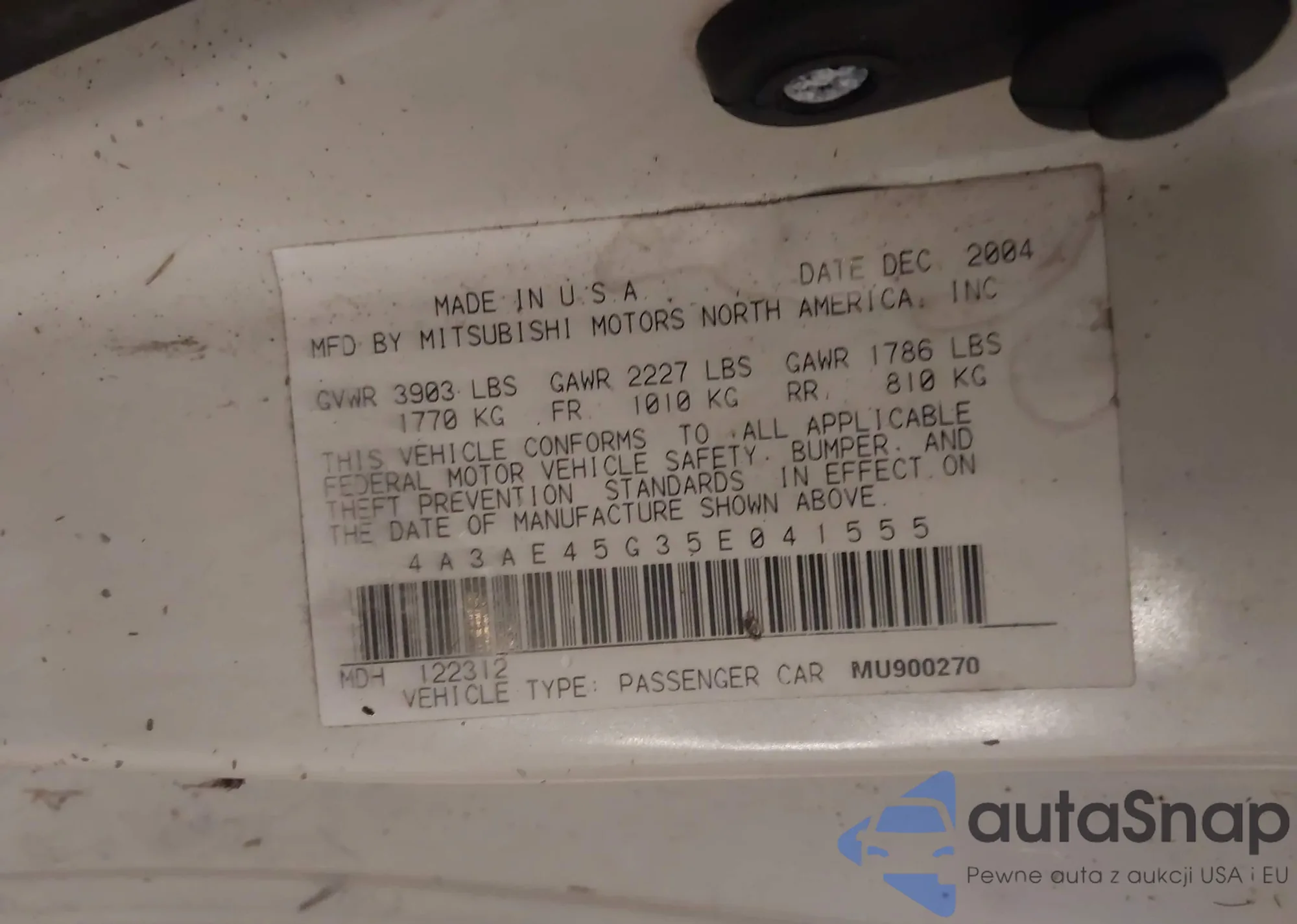 LOT: 42863680 VIN: 4A3AE45G35E041555