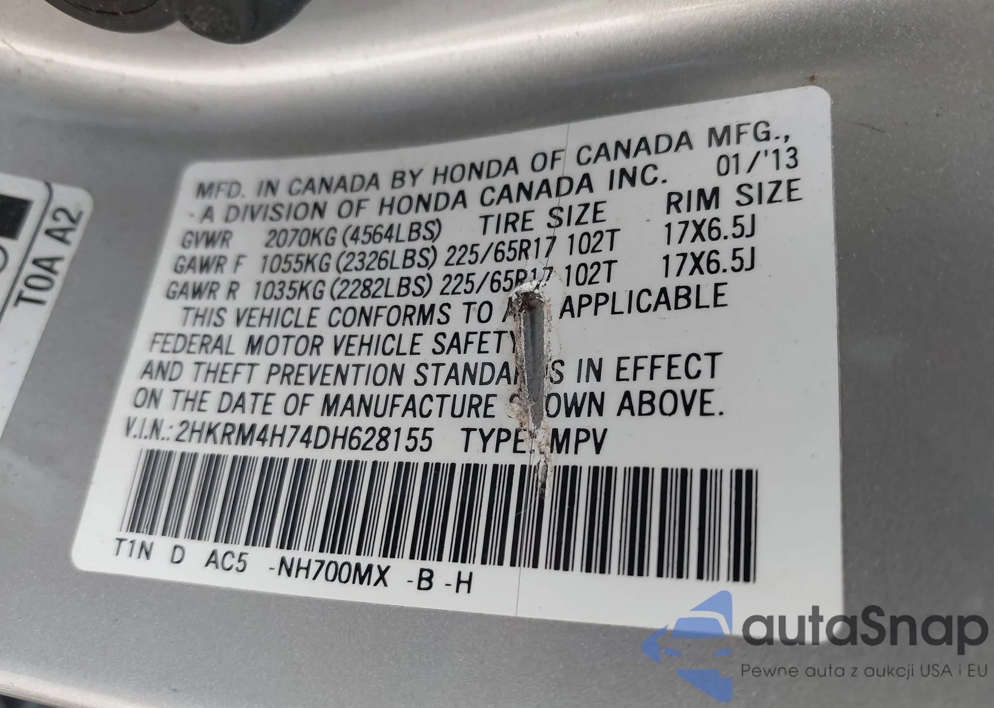 • VIN 19XFC2F53HE077433
