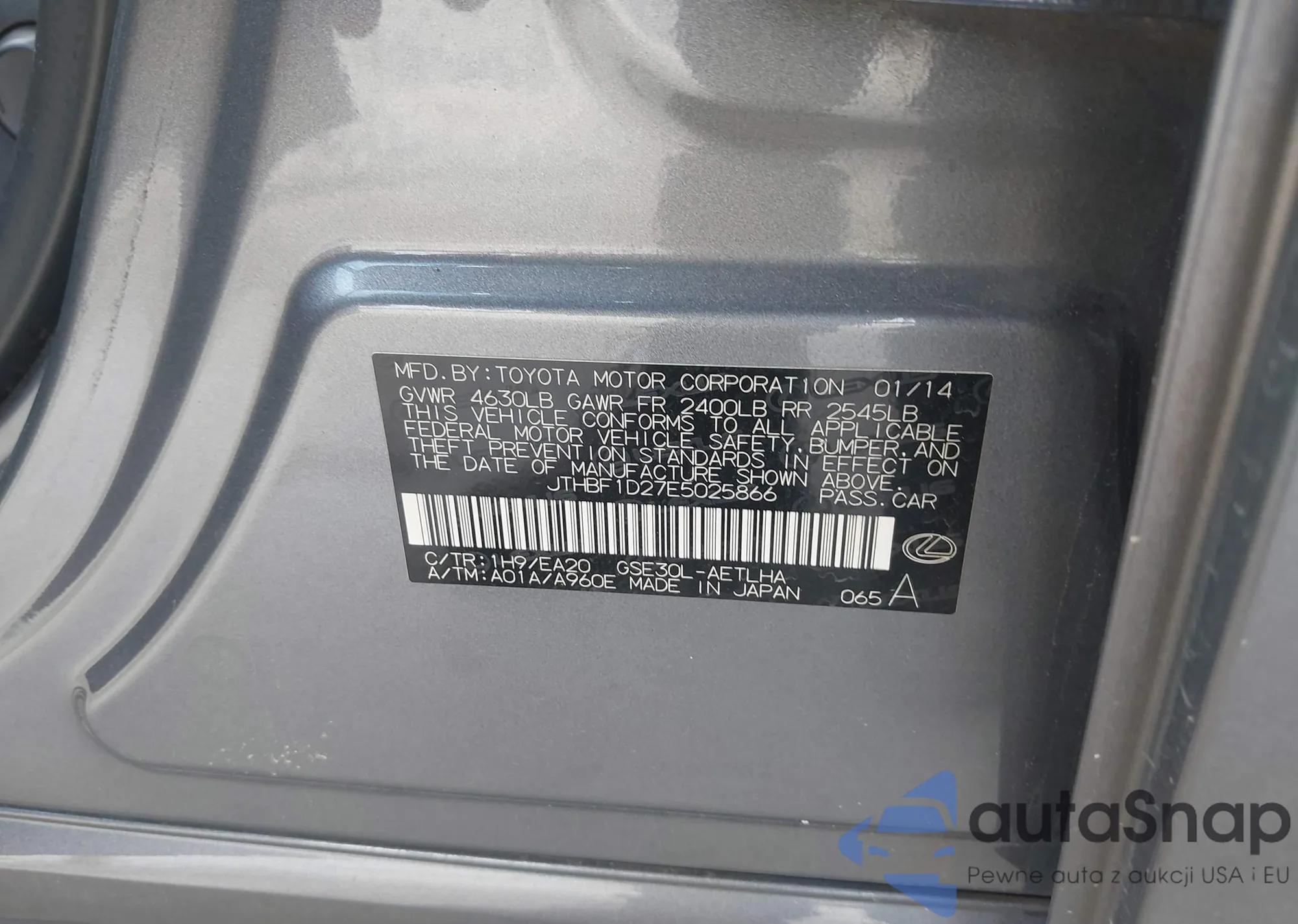 LOT: 42490934 VIN: JTHBF1D27E5025866