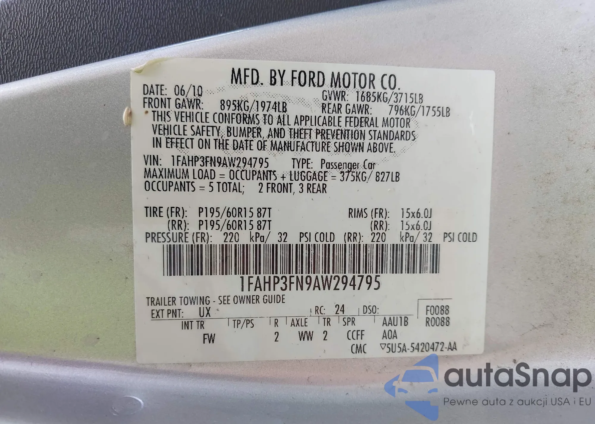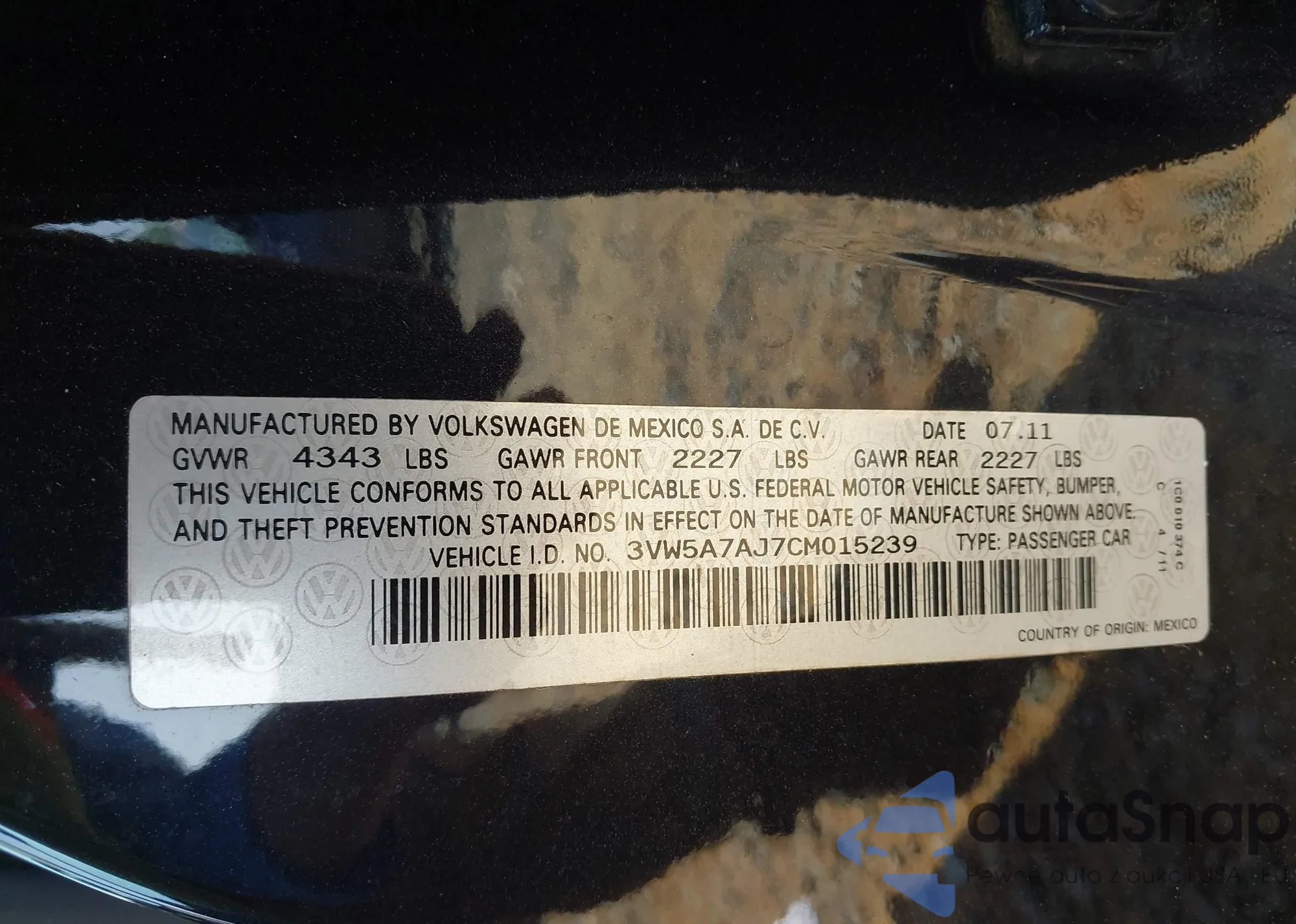 • VIN 3VW5A7AJ7CM015239